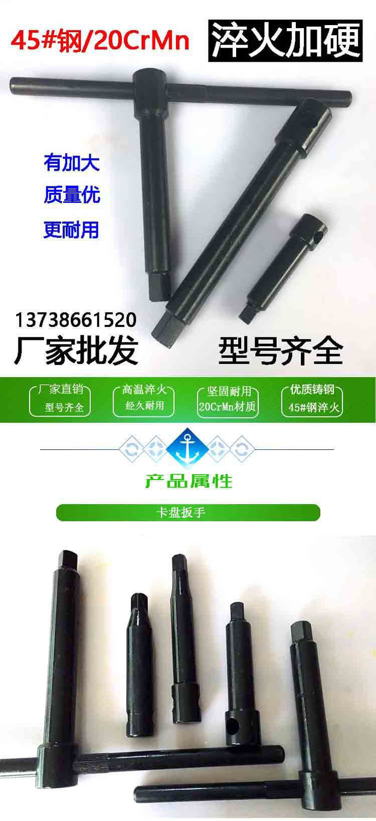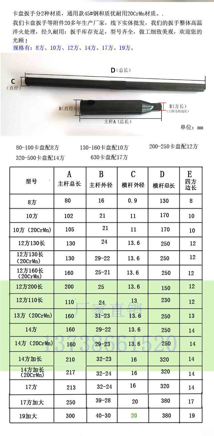 선반 3 턱 4 턱 척 렌치 250 척 키가 길어지고 대담한 척 렌치 크로스바 담금질 및 경화