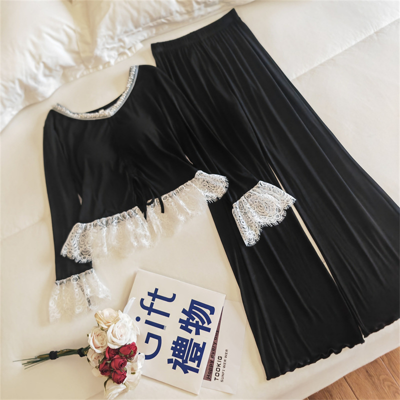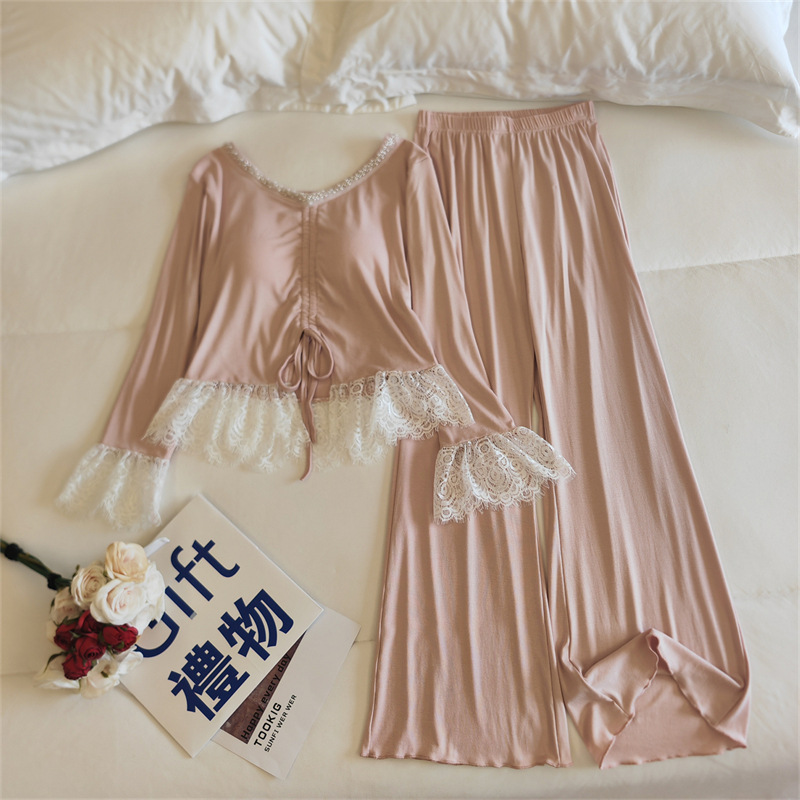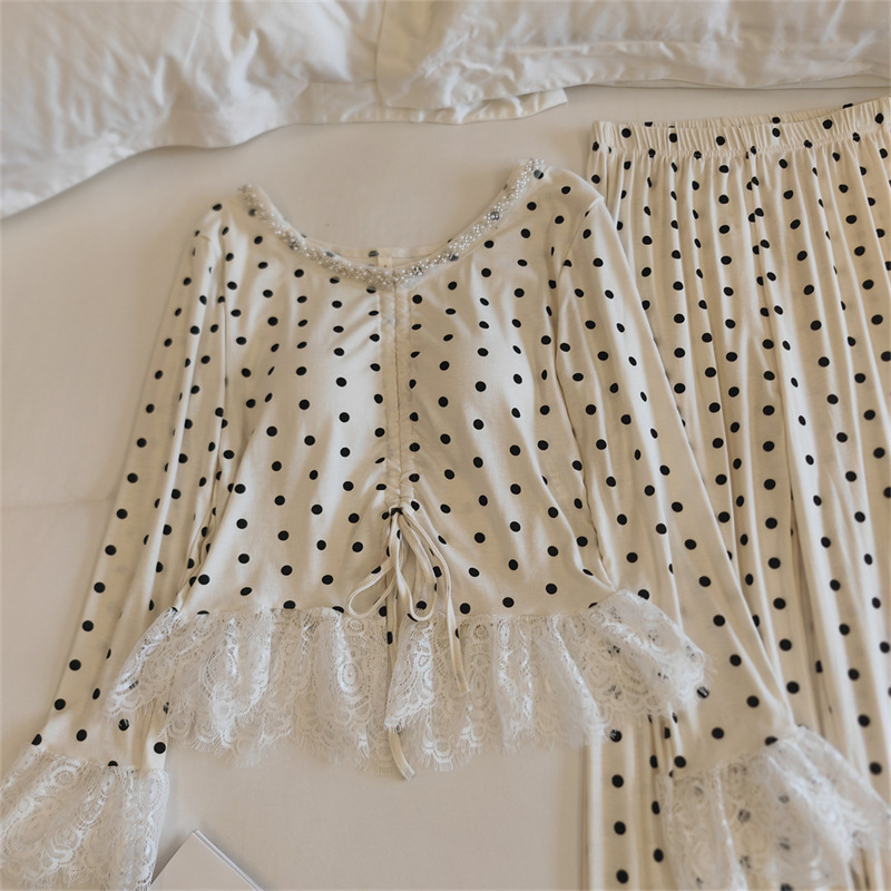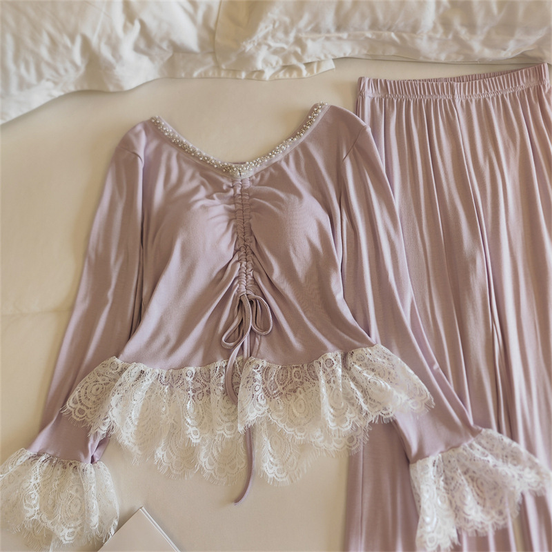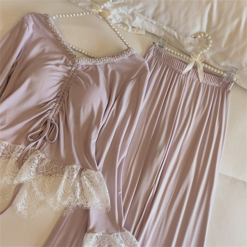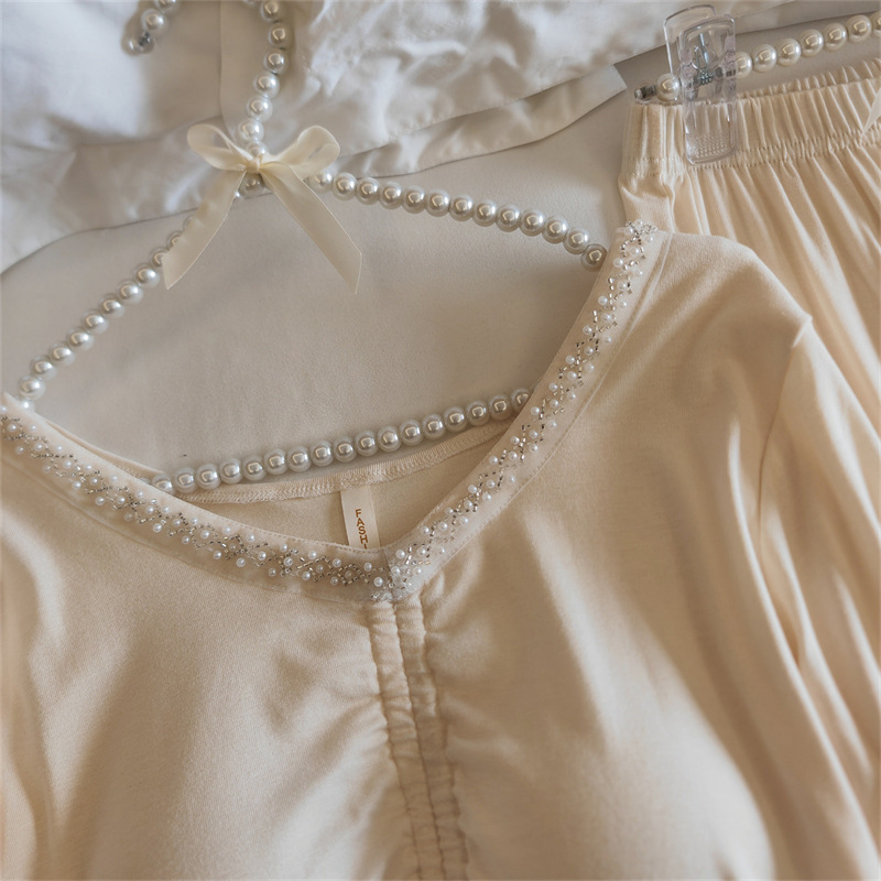 첫사랑 달콤한 나이를 줄이는 잠옷 여성의 봄과 가을 2025 새로운 얇은 긴팔 세트 가슴 패드 홈 의류 여성의 여름 얇은스토어 가기