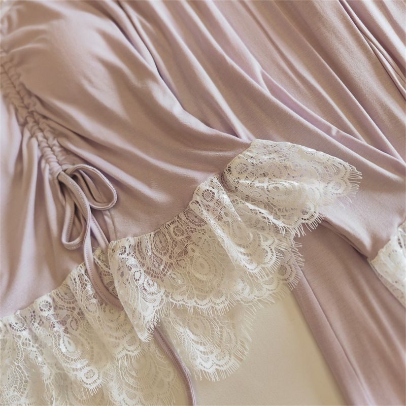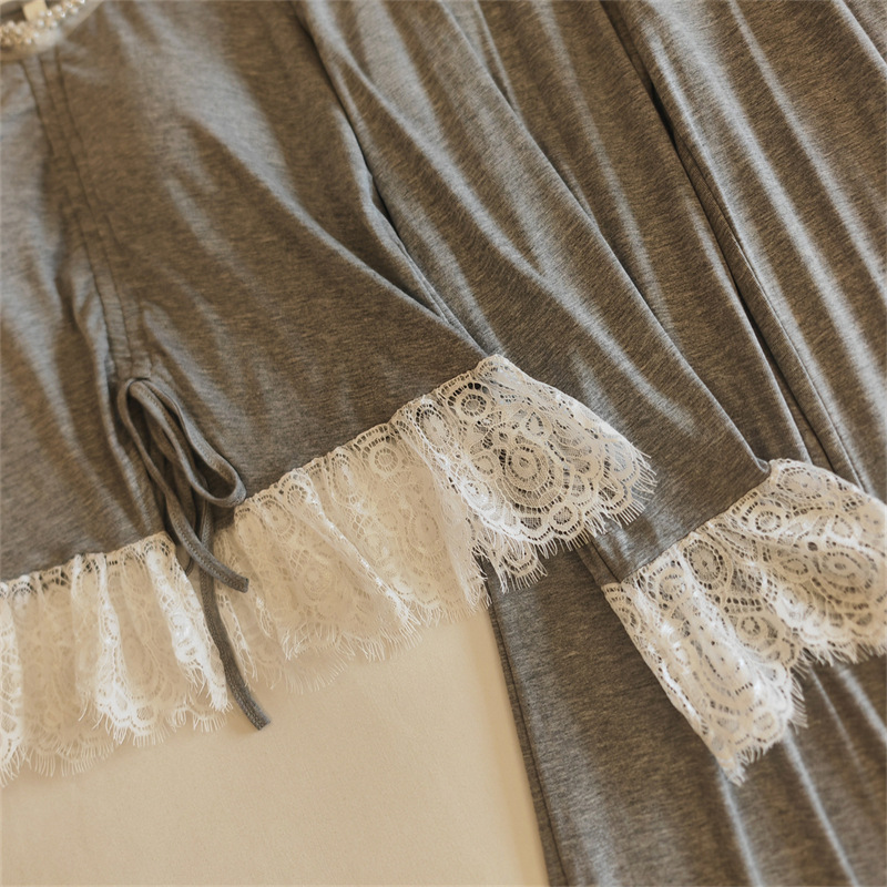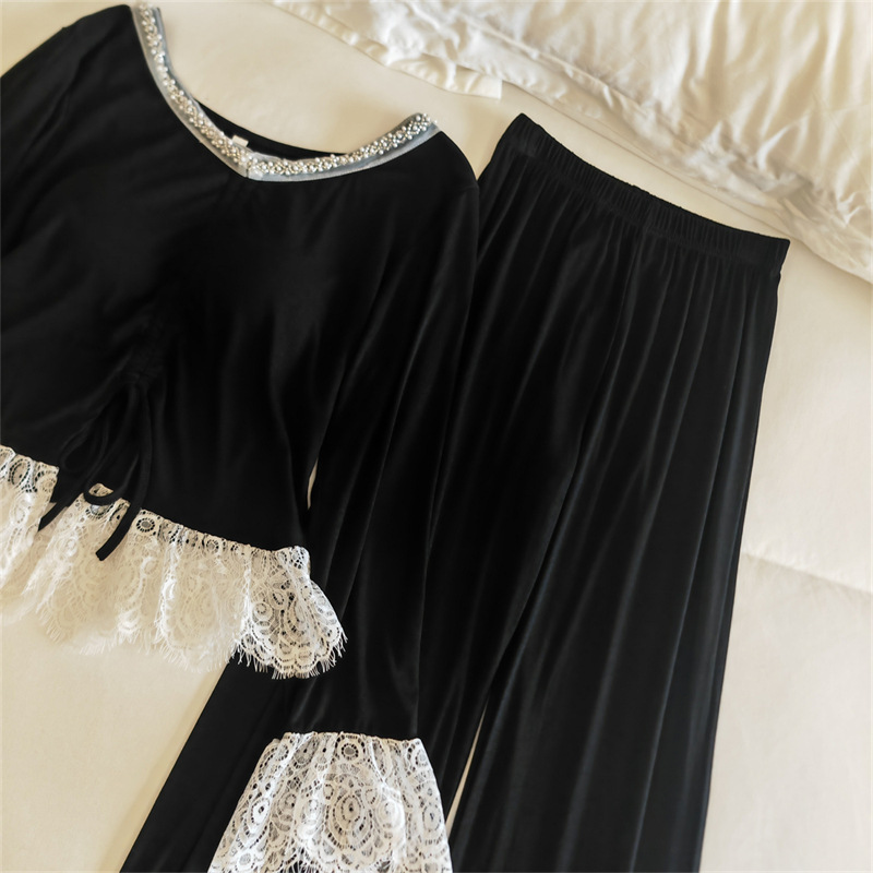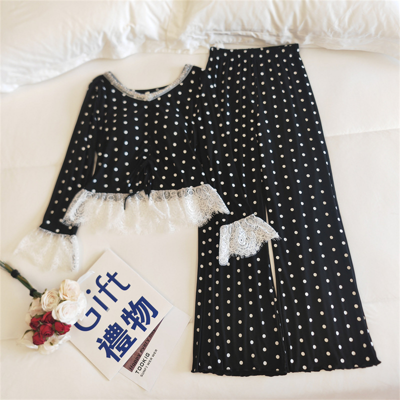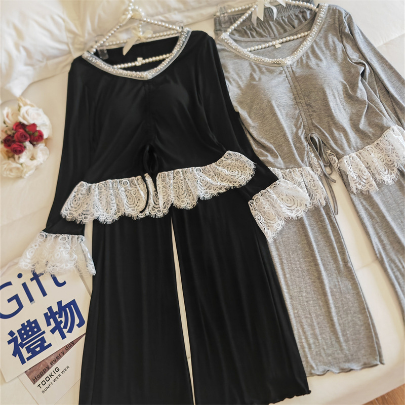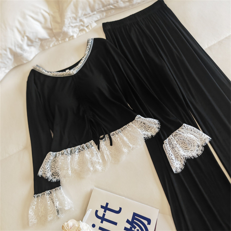 첫사랑 달콤한 나이를 줄이는 잠옷 여성의 봄과 가을 2025 새로운 얇은 긴팔 세트 가슴 패드 홈 의류 여성의 여름 얇은스토어 가기