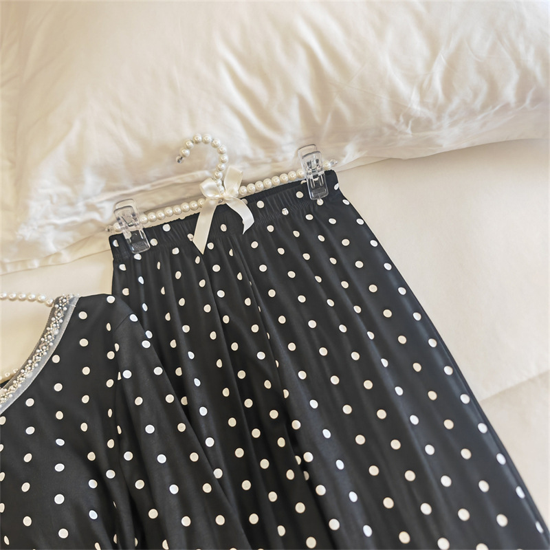 첫사랑 달콤한 나이를 줄이는 잠옷 여성의 봄과 가을 2025 새로운 얇은 긴팔 세트 가슴 패드 홈 의류 여성의 여름 얇은
