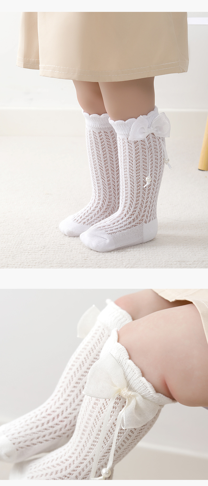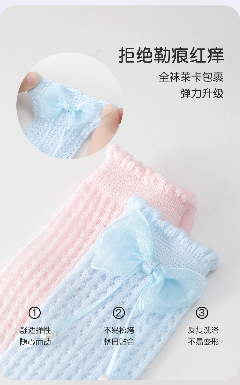 2025 여름 활 어린이 중간 길이의 스타킹 소녀 스타킹 얇은 면 무릎 위 아기의 무릎 패드 메쉬 양말