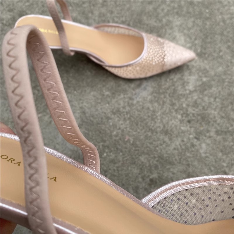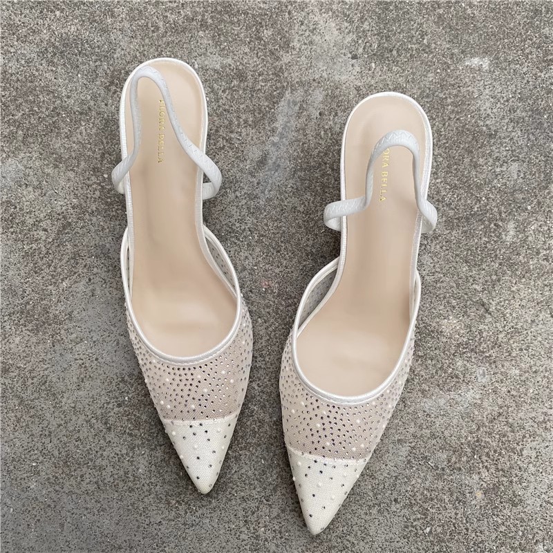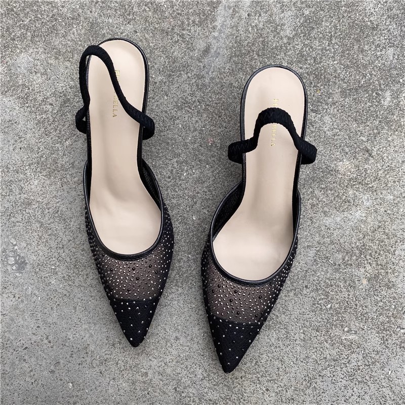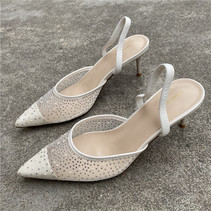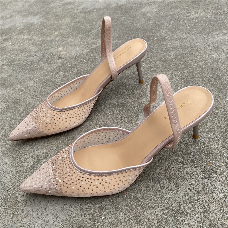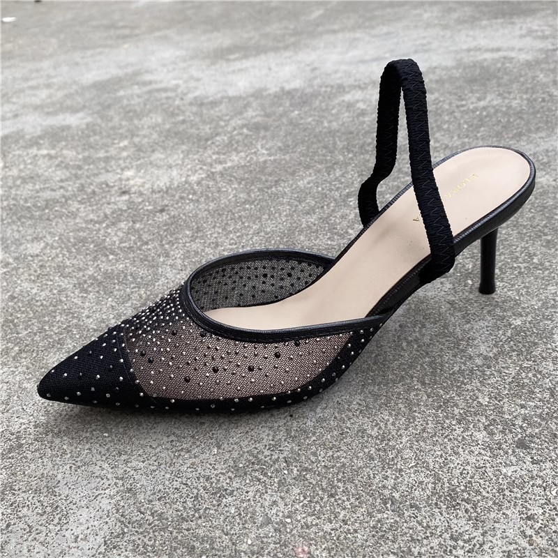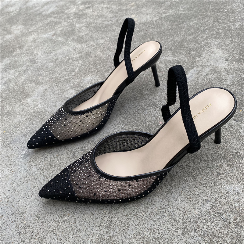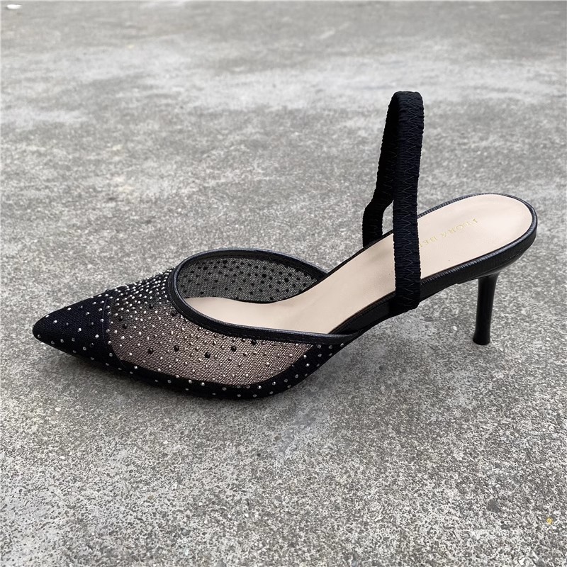 대외 무역 반쯤 덮인 중공 샌들 여성 새 여름 포인팅 된 아웃웨어 라인 스톤 메쉬 고급 하이힐 신발