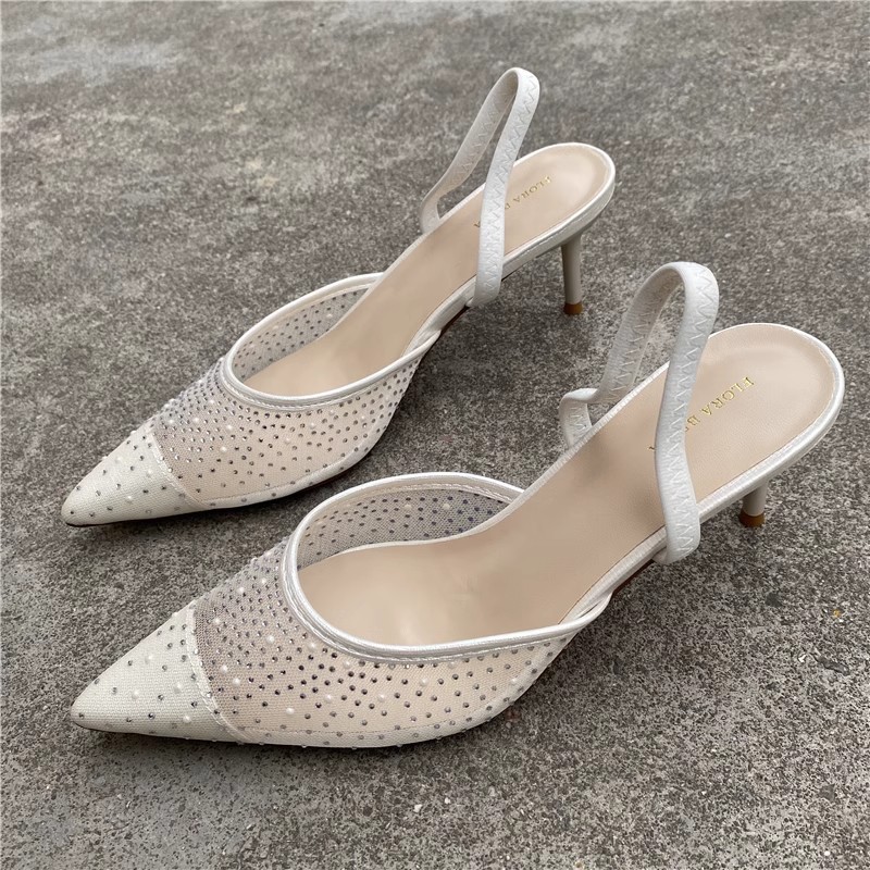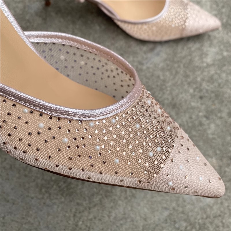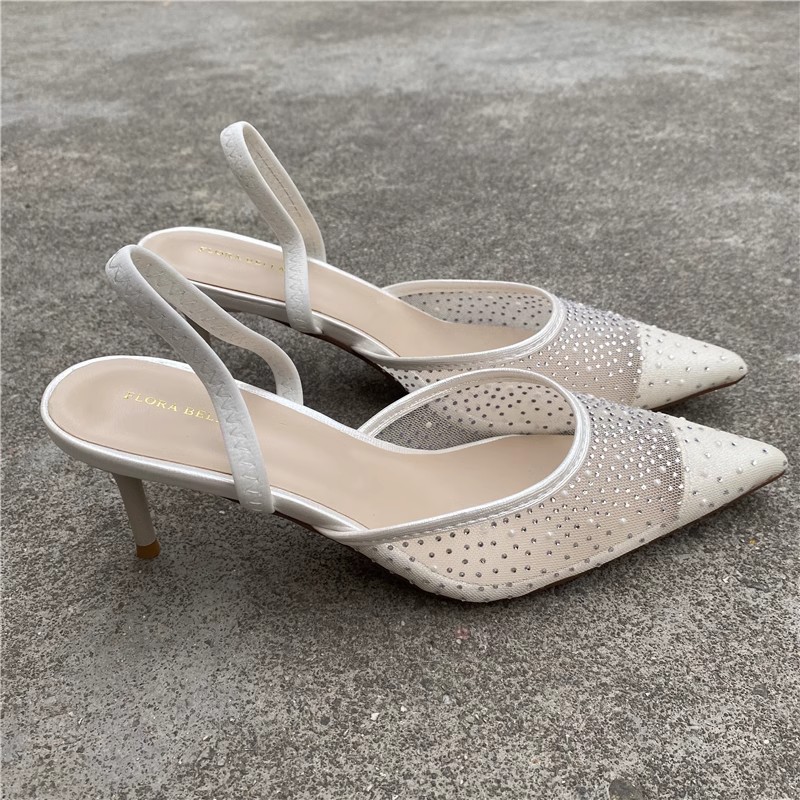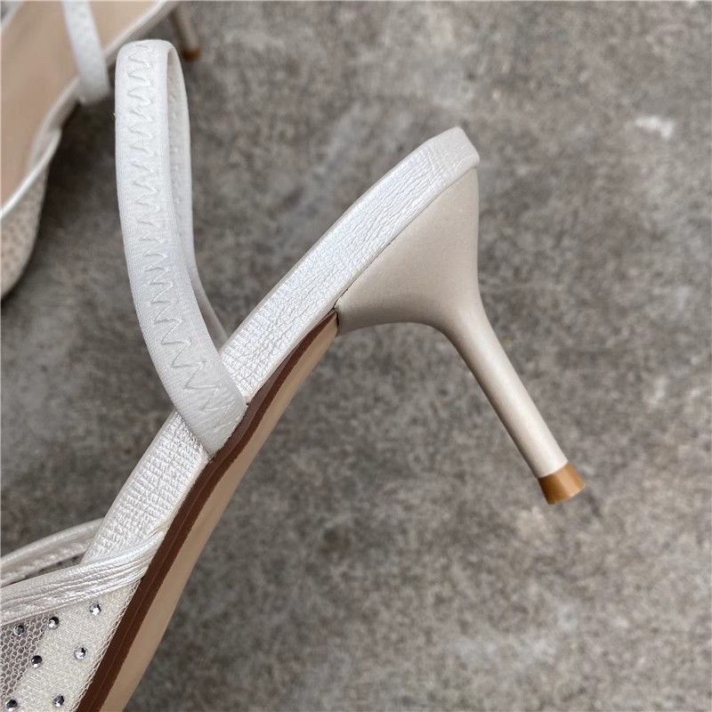 대외 무역 반쯤 덮인 중공 샌들 여성 새 여름 포인팅 된 아웃웨어 라인 스톤 메쉬 고급 하이힐 신발스토어 가기