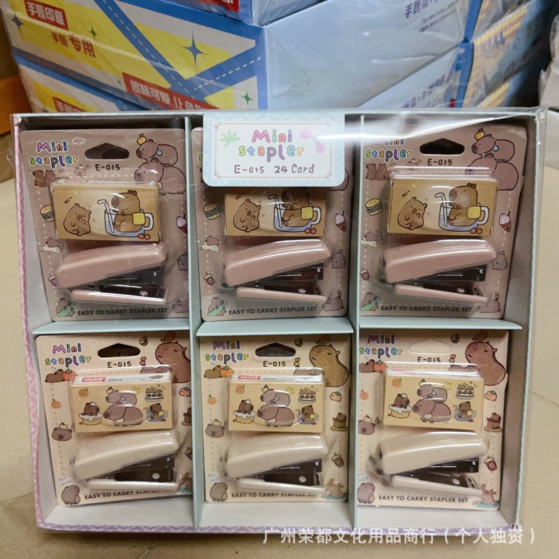 새로운 만화 미니 스테이플러 세트 학생 시험 종이 사무실 재료 스테이플러 데스크탑 사무용품스토어 가기