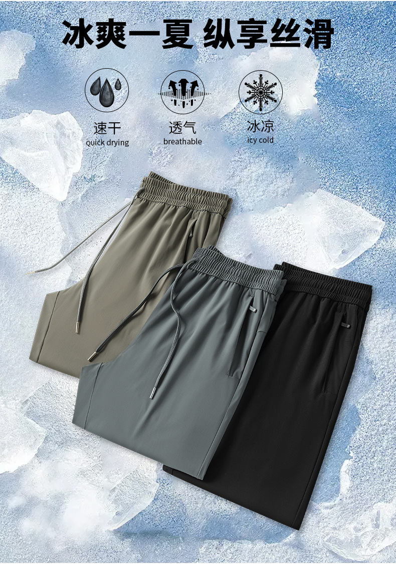 나노그리드 아이스 실크 팬츠 여름 얇은 통기성 대형 남녀 공용 캐주얼 스포츠 팬츠 공장 도매 비즈니스 캐주얼