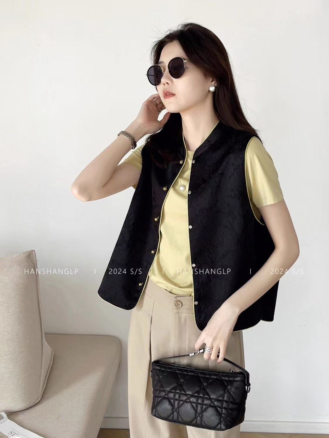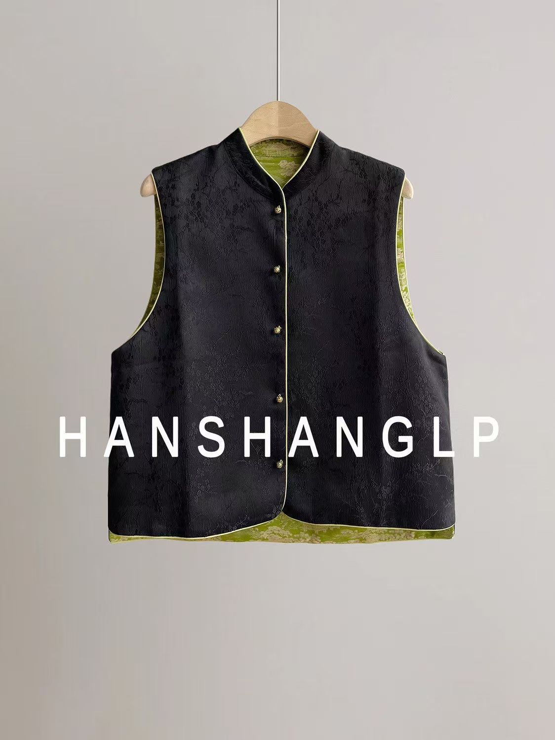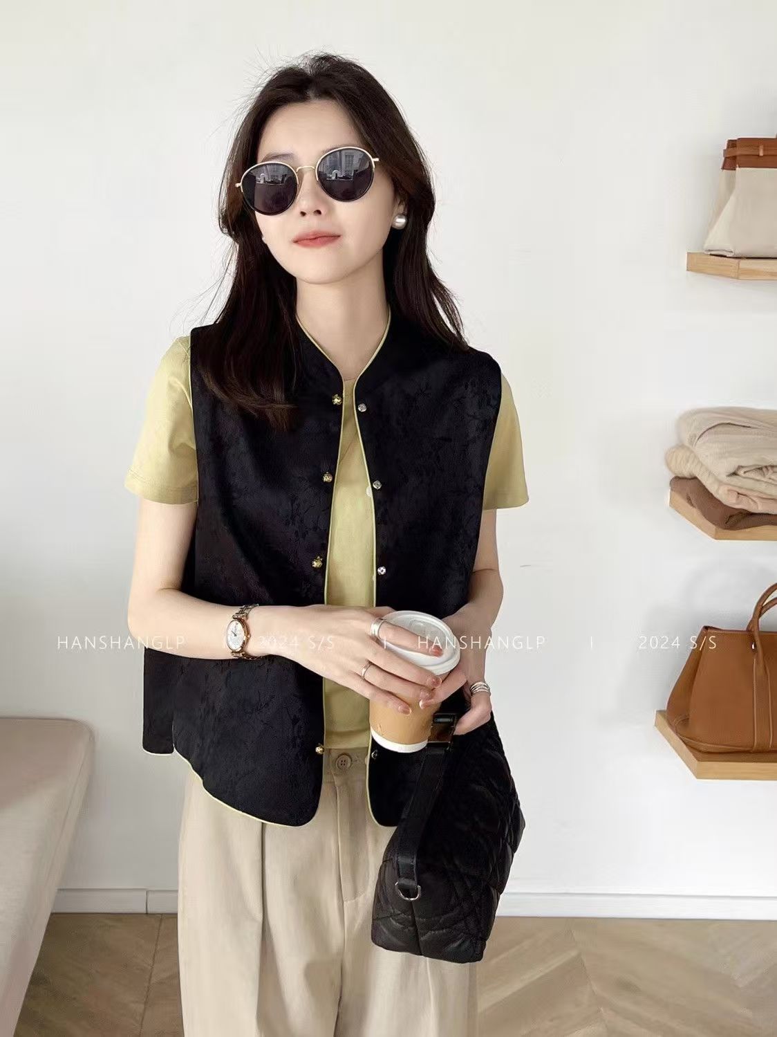 봄과 가을 더블 입고 국가 스타일 중국 스타일 조끼 여성 봄 착용 수직 칼라 탑 빈티지 재킷 자카드 조끼 여성스토어 가기