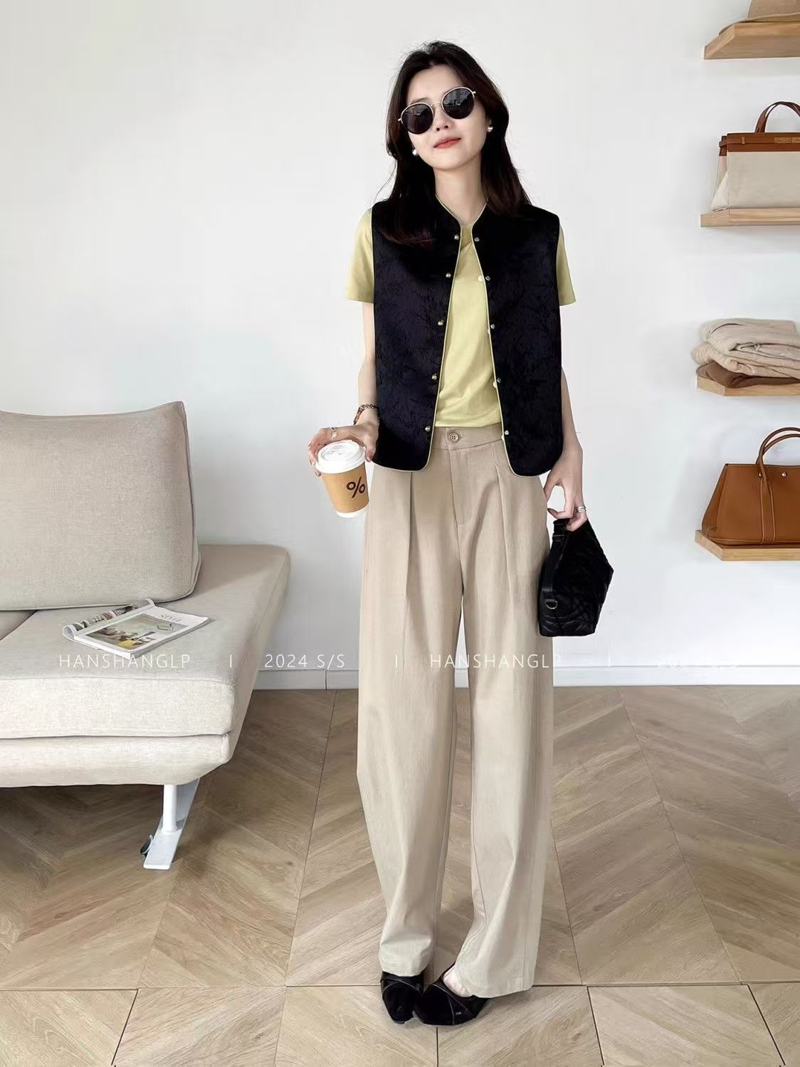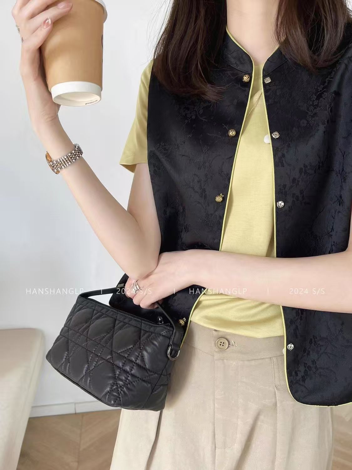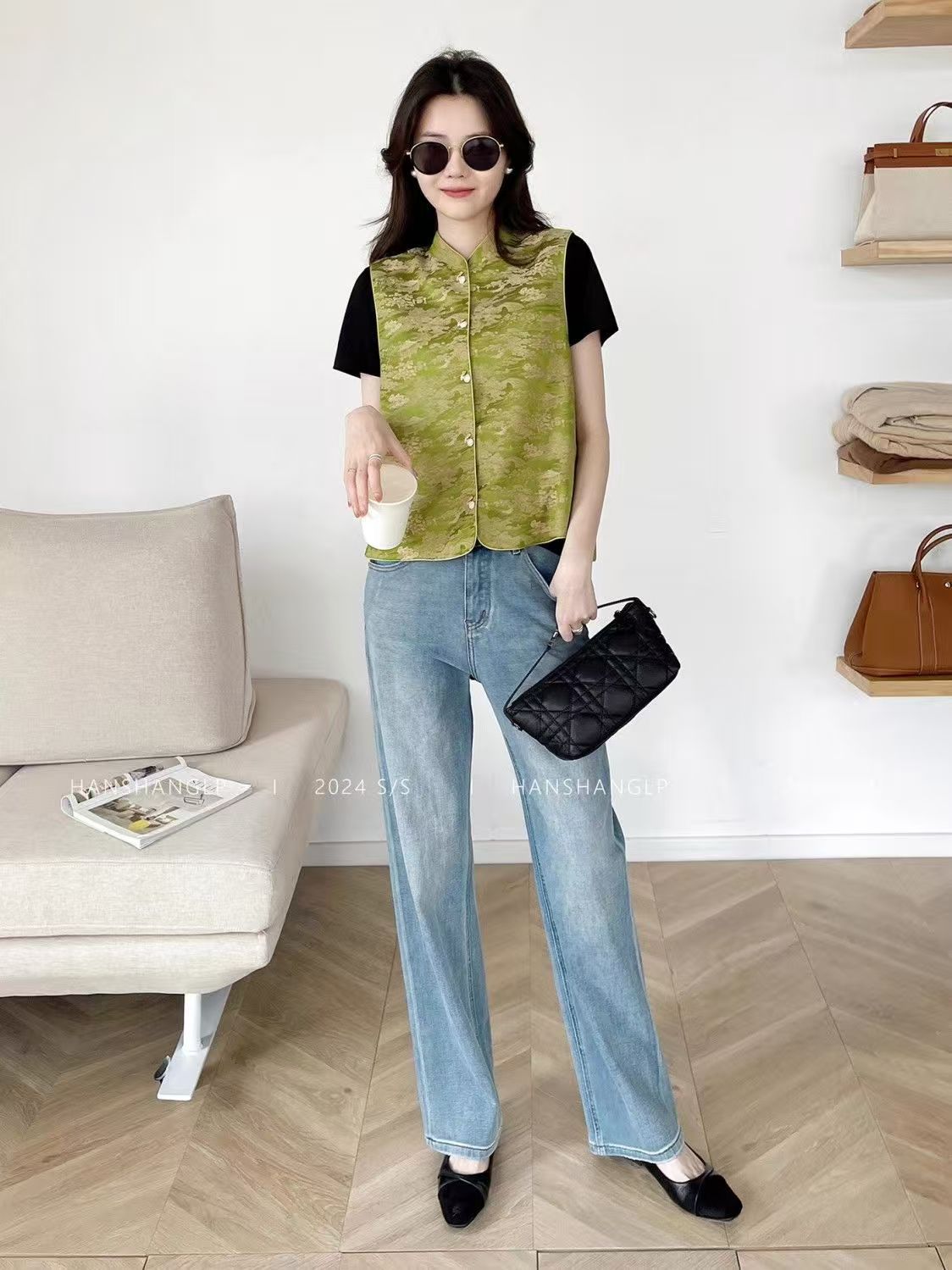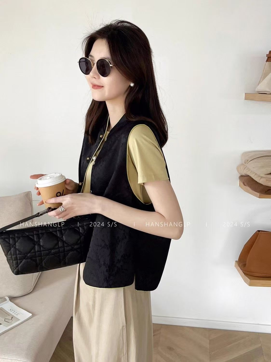 봄과 가을 더블 입고 국가 스타일 중국 스타일 조끼 여성 봄 착용 수직 칼라 탑 빈티지 재킷 자카드 조끼 여성스토어 가기