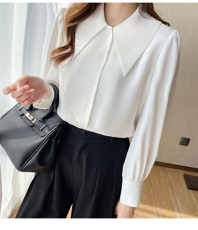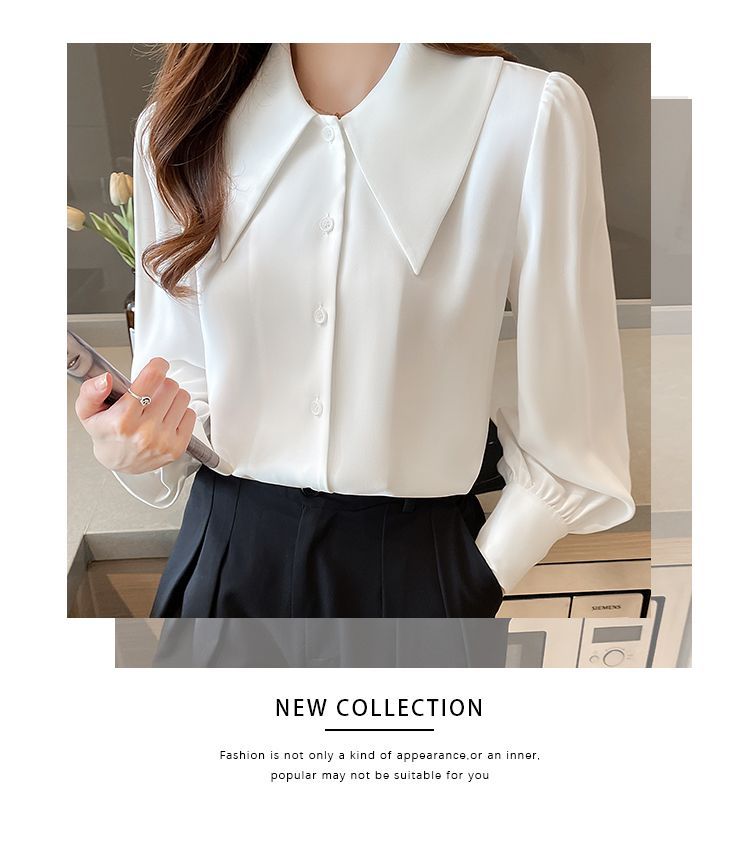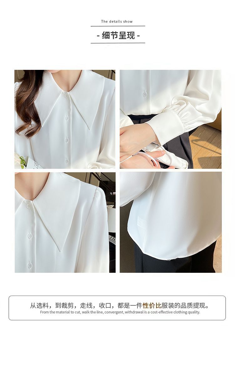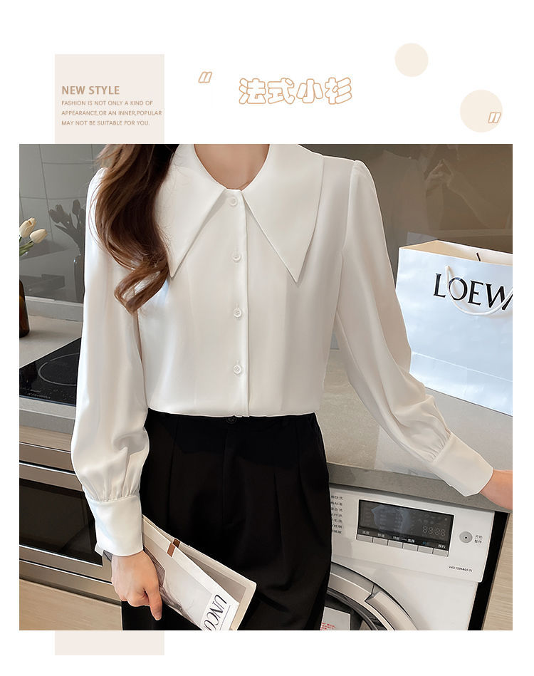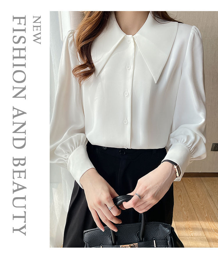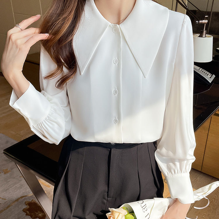 2025 새로운 봄 포인팅 칼라 전문 화이트 쉬폰 셔츠 여성 긴 소매 원피스 OL 인터뷰 디자인 센스 화이트 셔츠스토어 가기