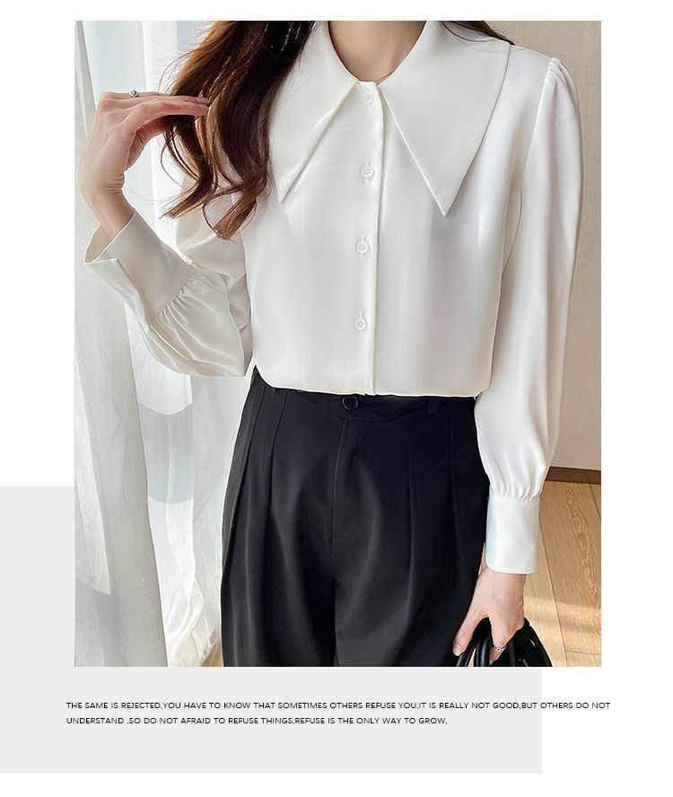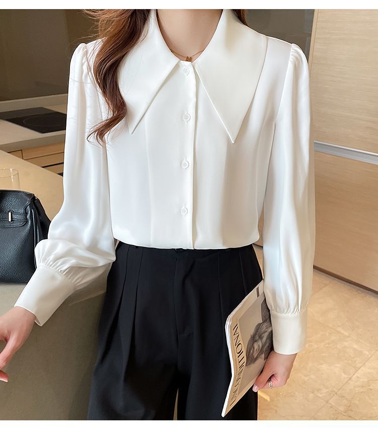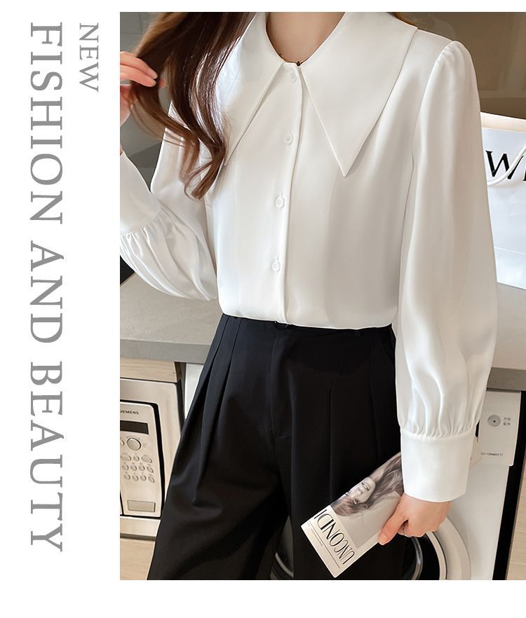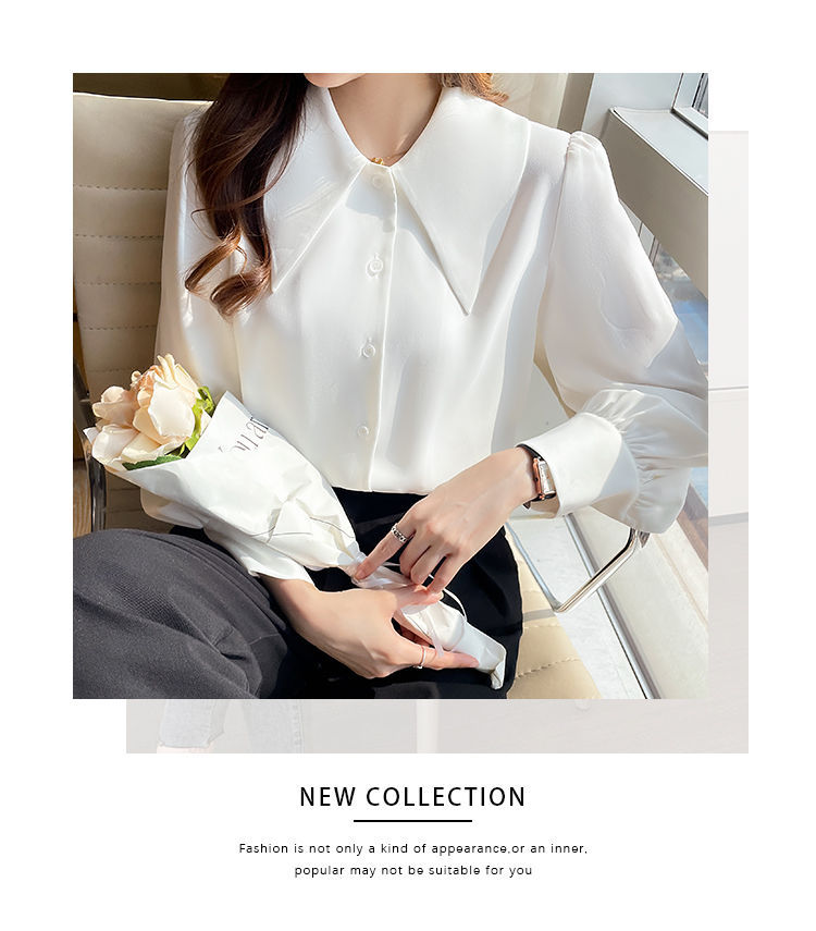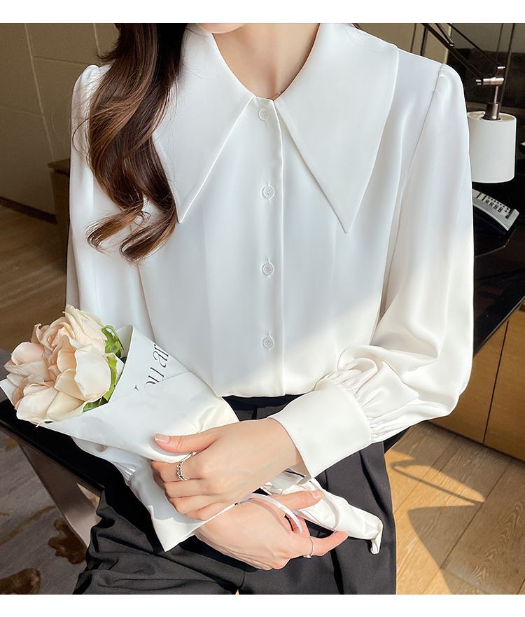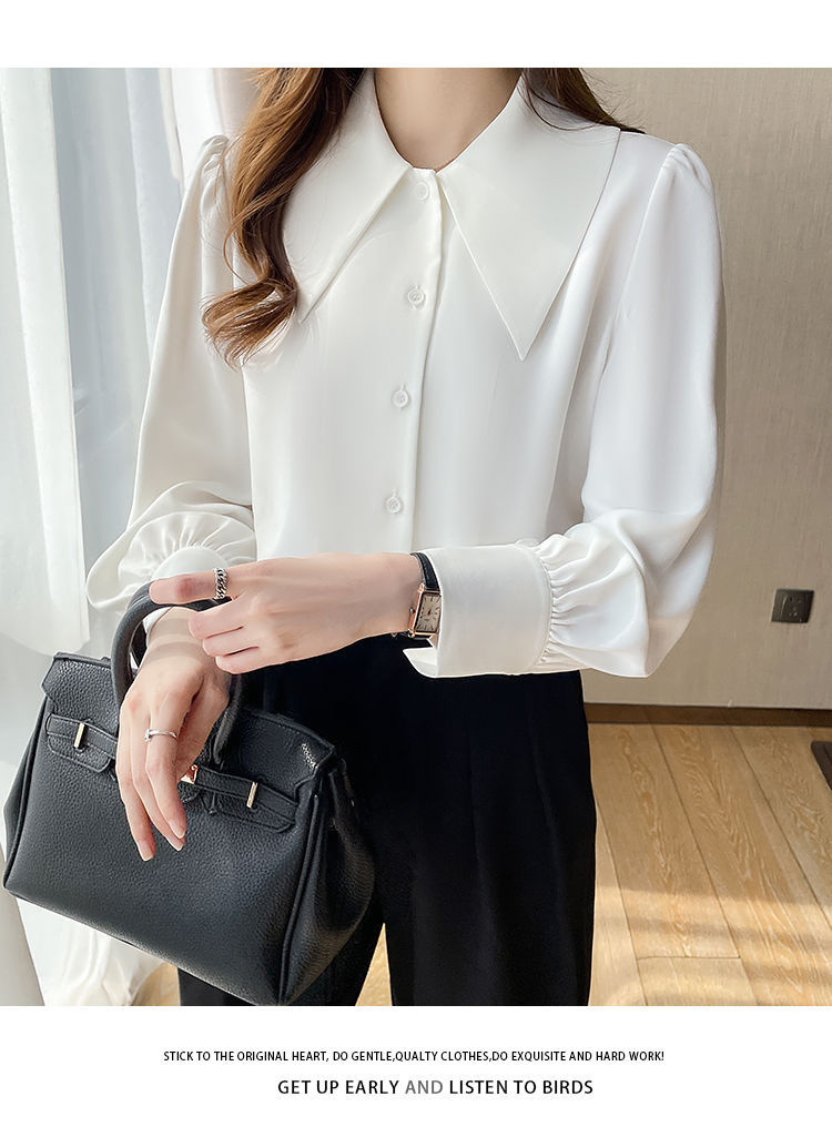 2025 새로운 봄 포인팅 칼라 전문 화이트 쉬폰 셔츠 여성 긴 소매 원피스 OL 인터뷰 디자인 센스 화이트 셔츠스토어 가기