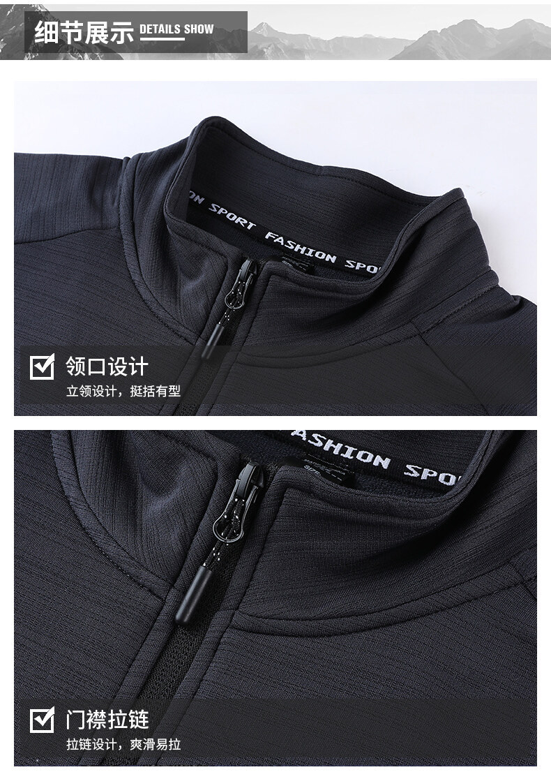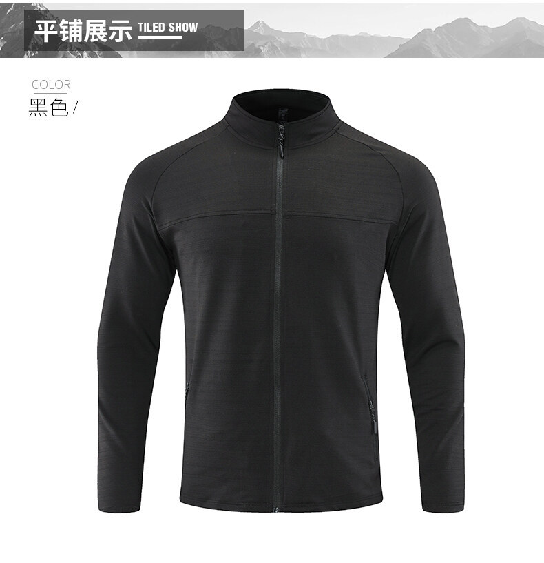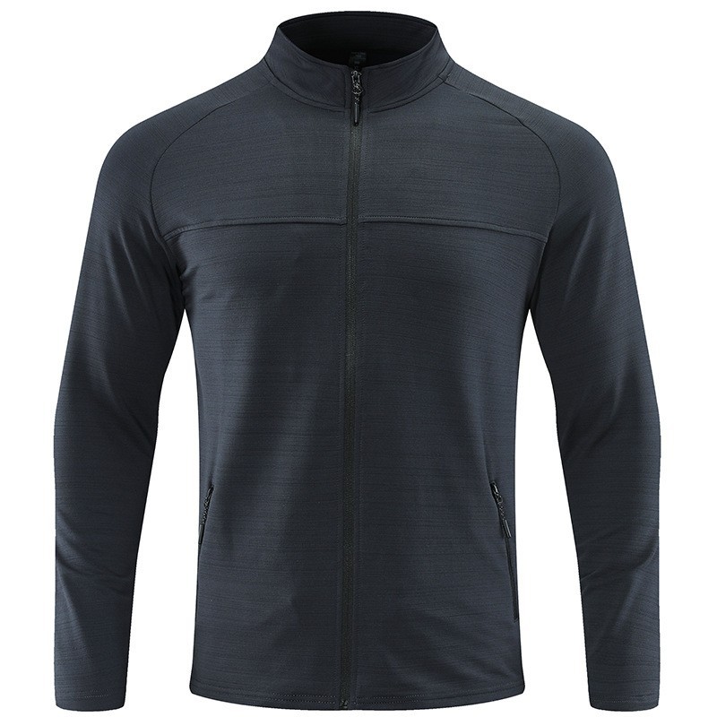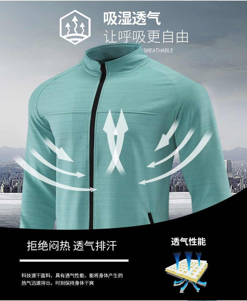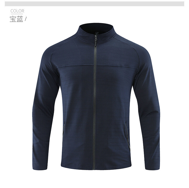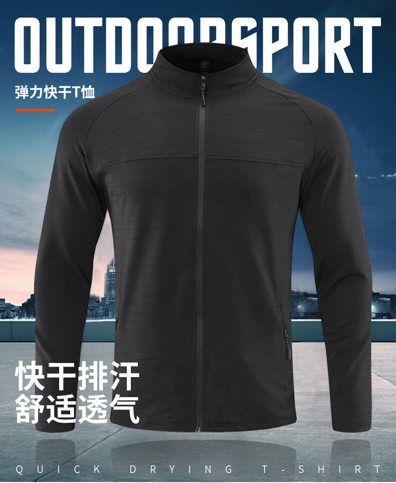 남자의 빠른 건조 스트레치 긴팔 재킷 야외 등산 달리기 세트 스트레치 칼라 방풍 재킷 통기성 스포츠 카디건 트렌디