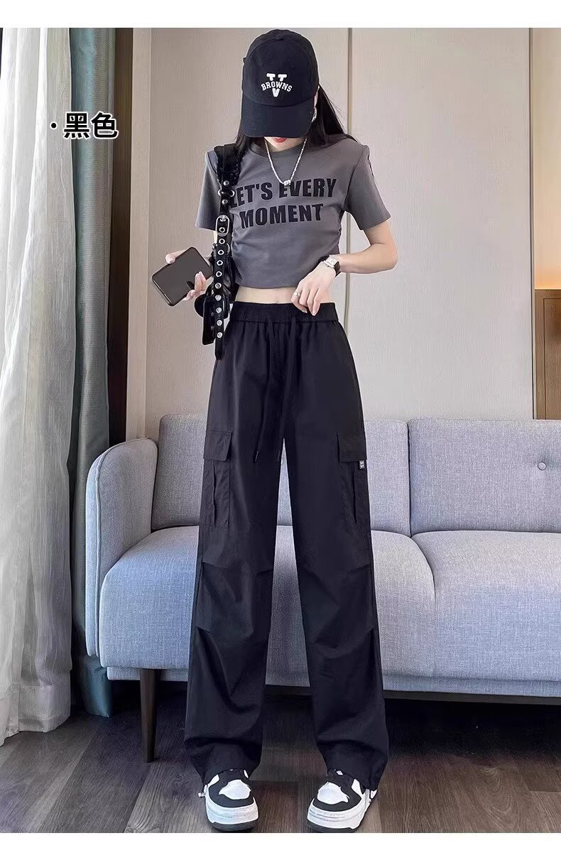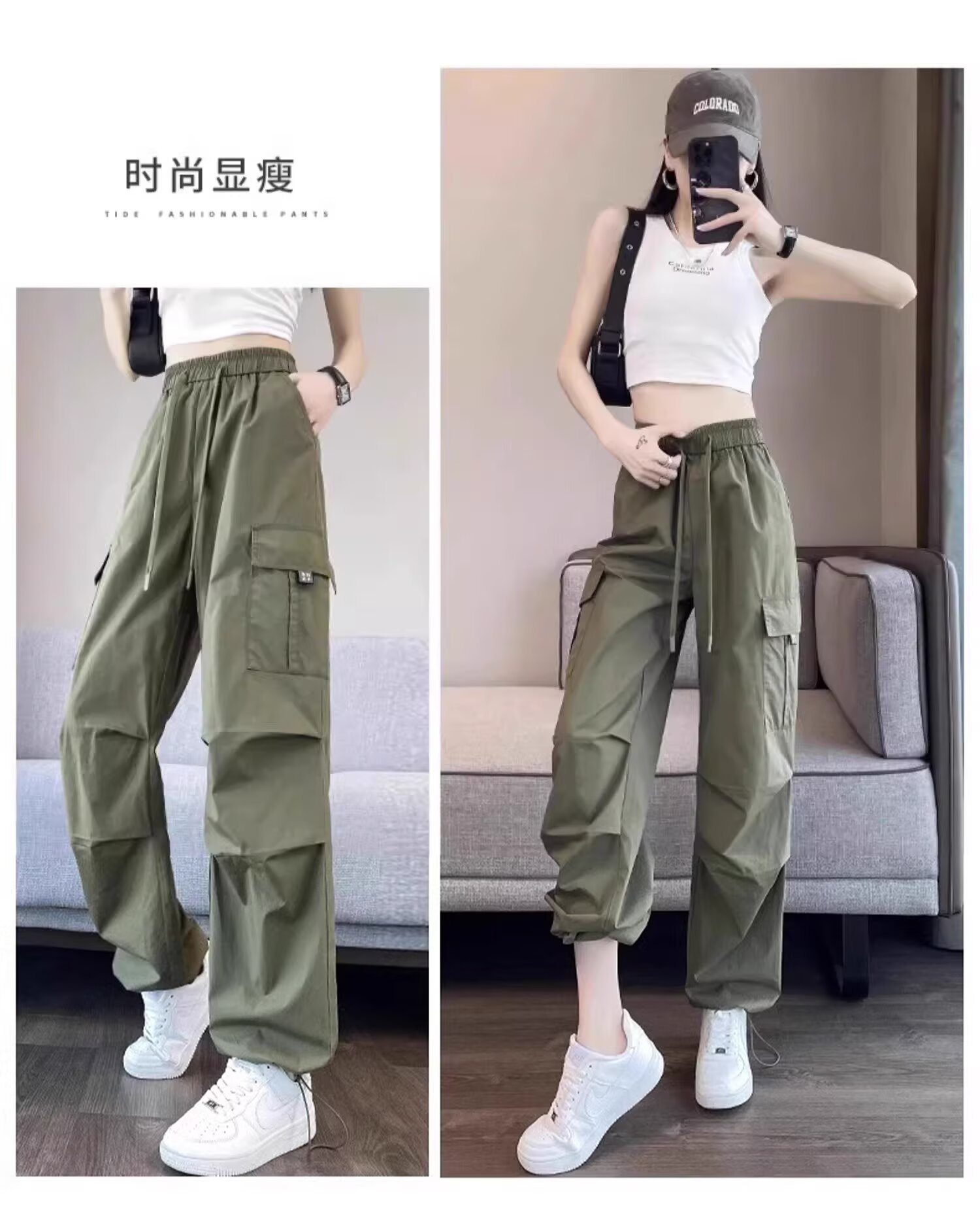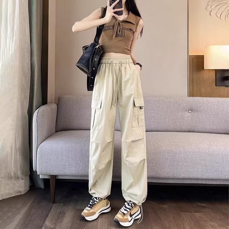 아메리칸 스타일 오버홀 여성 여름 새로운 얇은 높은 허리 느슨한 슬리밍 클라이버 바지 어린이를위한 캐주얼 스포츠 바지스토어 가기