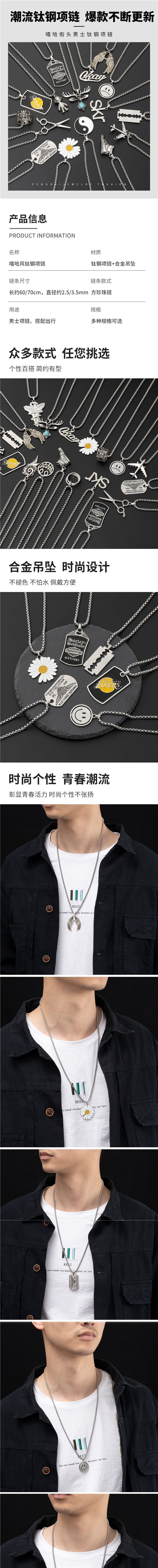 스트리트 패션 브랜드 간단한 티타늄 스틸 독특한 Ins 힙합 펜던트 체인 목걸이 남성 액세서리 여성용 긴 모직 체인스토어 가기