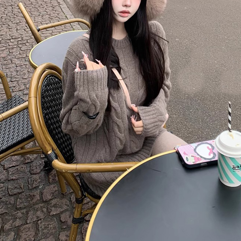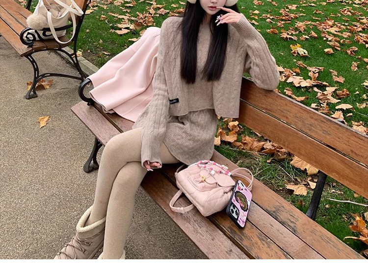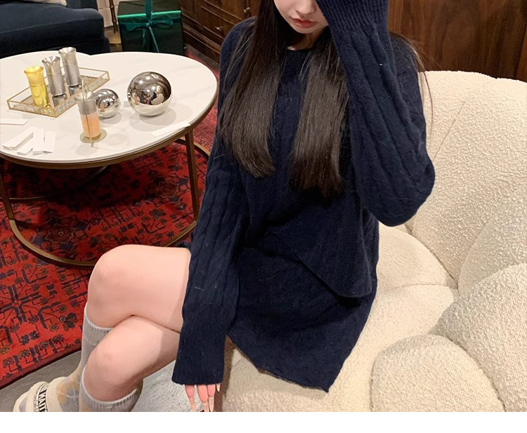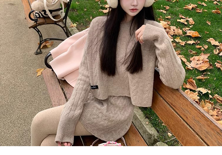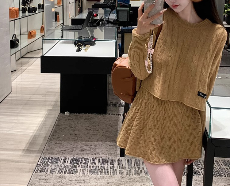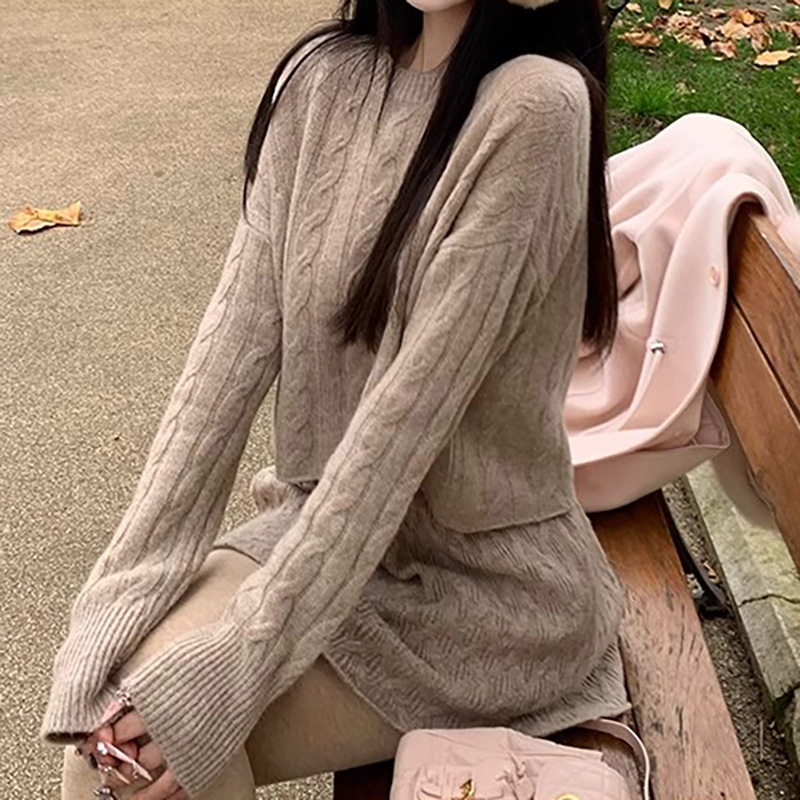 소녀풍 레트로 꽈배기 패턴 루즈핏 스웨터 재킷/니트 스웨터 스커트 세트스토어 가기
