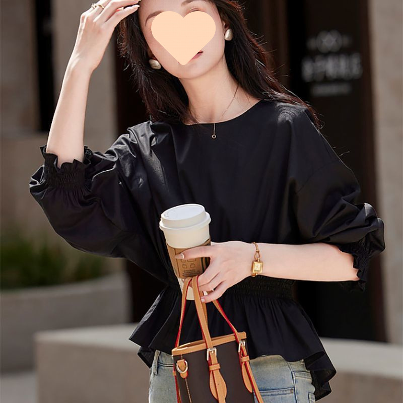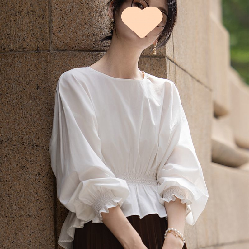 2025 하이 엔드 크루 넥 프랑스 패션 느슨한 슬리밍 벨리 커버 셔츠 여성의 세련된 봄과 여름 탑
