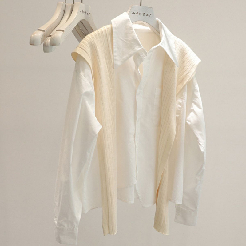 작은 목도리 긴팔 셔츠 여성면 봄과 가을 얇은 한국식 느슨한 슬리밍 연령 감소 디자인 센스 셔츠스토어 가기