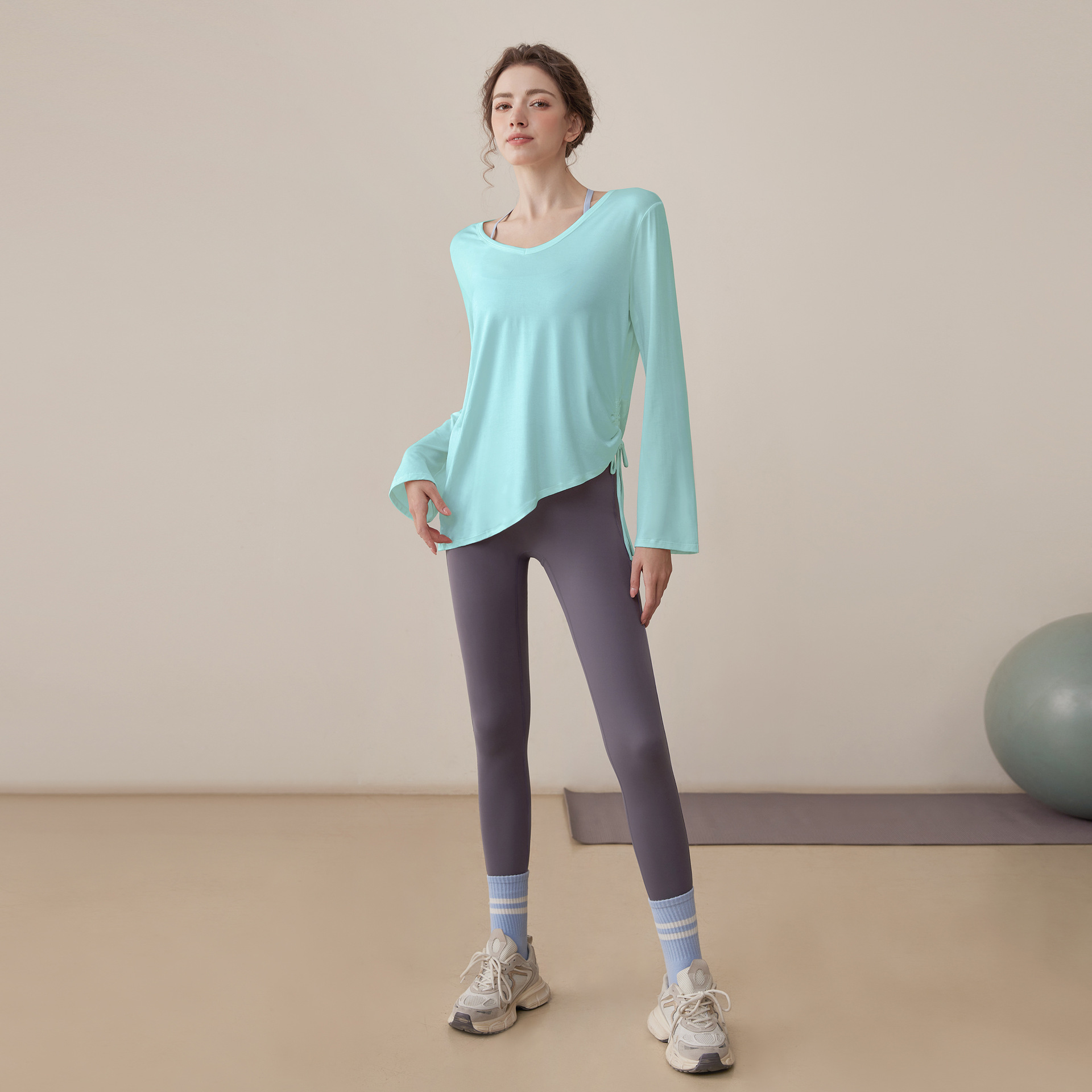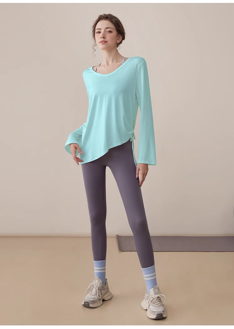 스포츠 블라우스 느슨한 통기성 요가 착용 여성의 2025 새로운 필라테스 훈련 긴 소매 피트니스 착용 스포츠 탑
