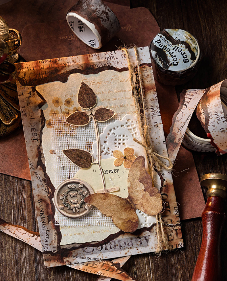 설탕시 외계인과 종이 테이프 얼룩덜룩 한 세기 시리즈 복고풍 녹 테마 손 계정 DIY 기본 장식 콜라주