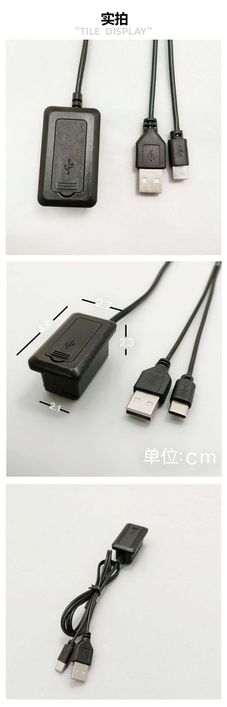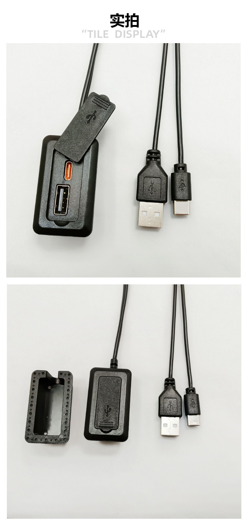 배낭 충전 케이블 수하물 외부 확장 코드 듀얼 출력 USB 플러스 타입 전원 코드 플립 USB 연장 코드