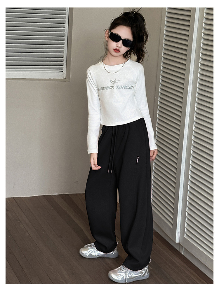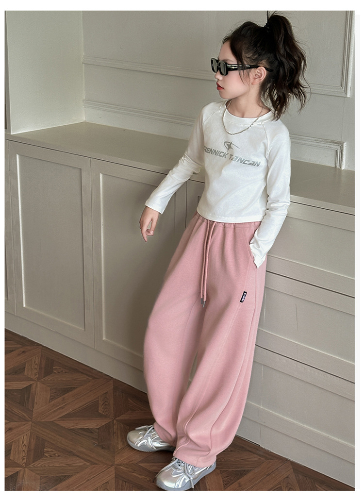 여자 슈퍼 잘 생긴 바지 봄 운동복 어린이 봄과 가을 넓은 다리 바지 여자 큰 어린이 스포츠 바지 Huzhou Zhili