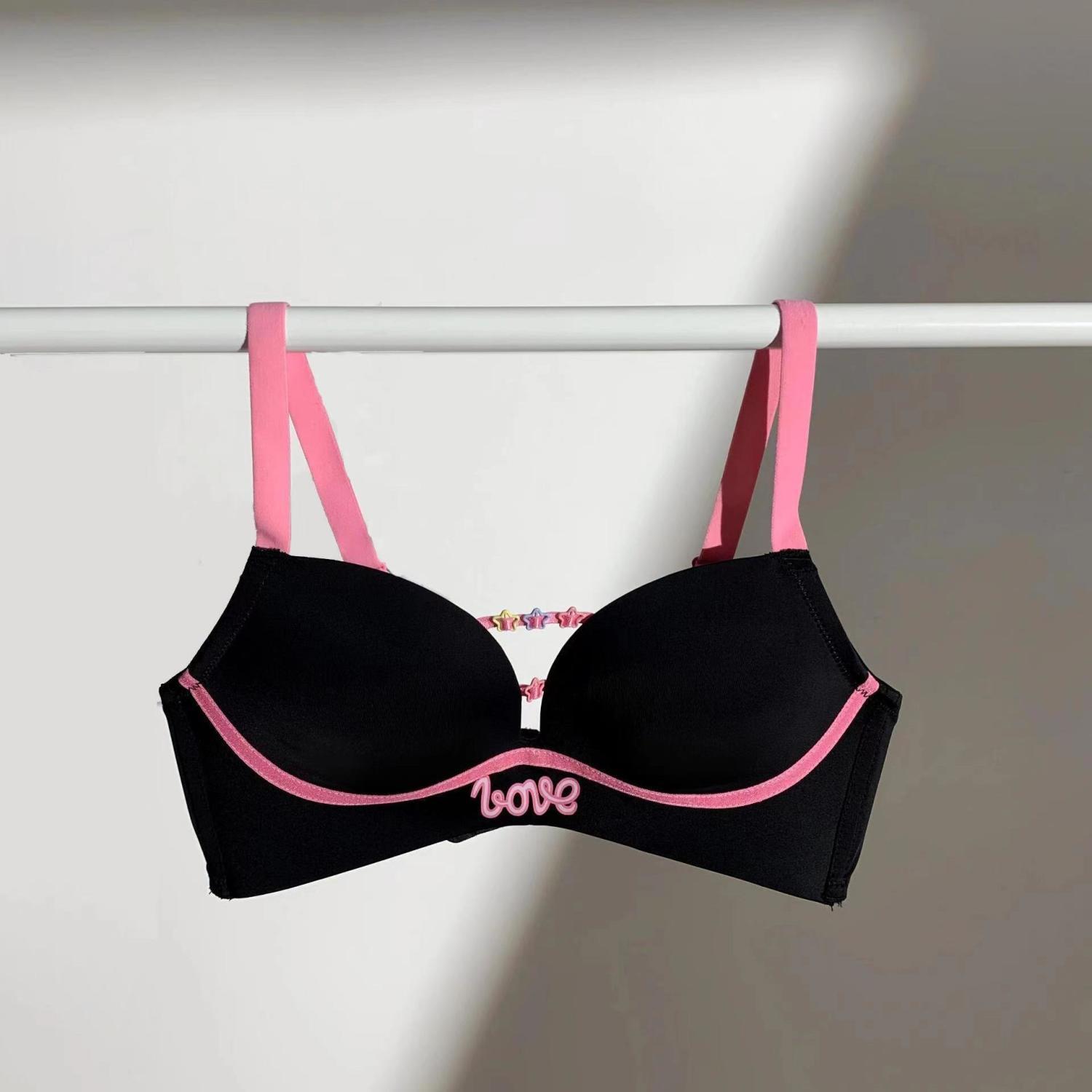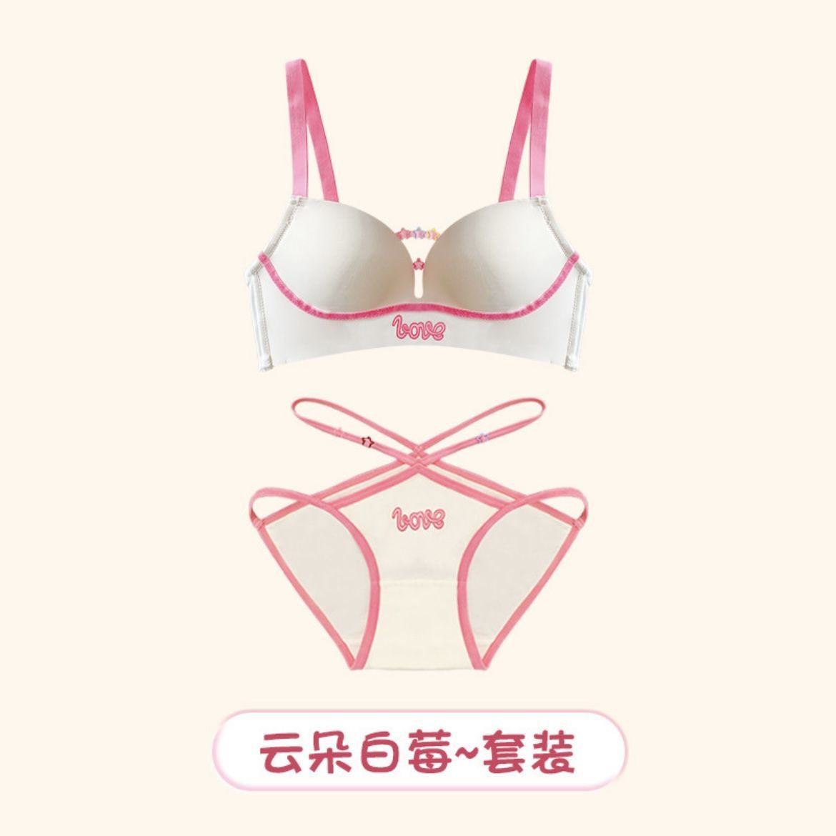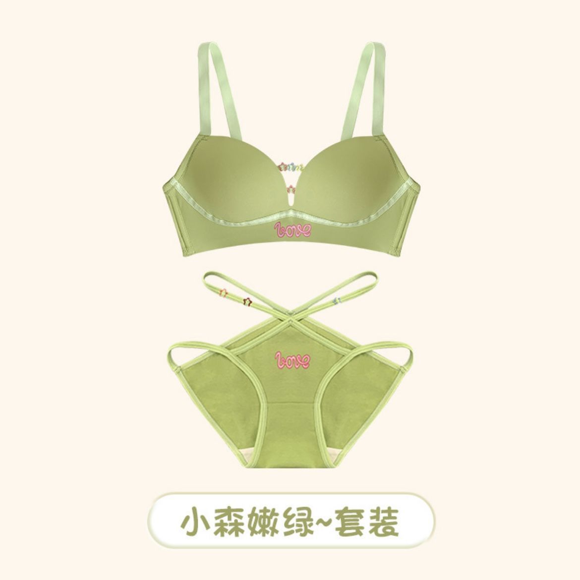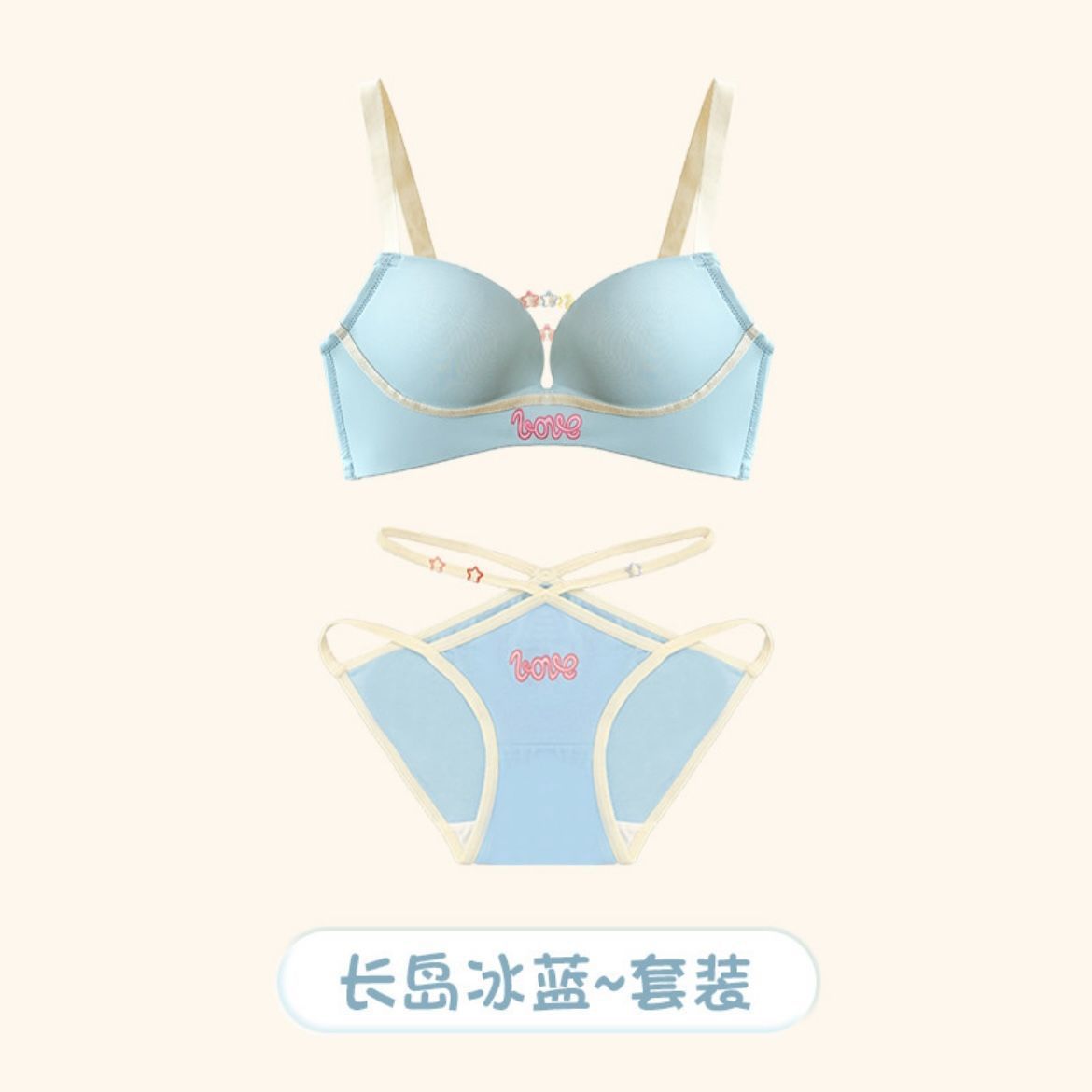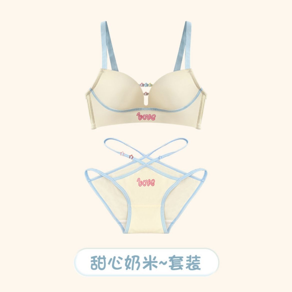 새로운 원피스 소녀의 비 마킹 인쇄 된 브래지어 작은 가슴 푸시 업 대형 비 강철 반지 순수한 섹시한 속옷 세트