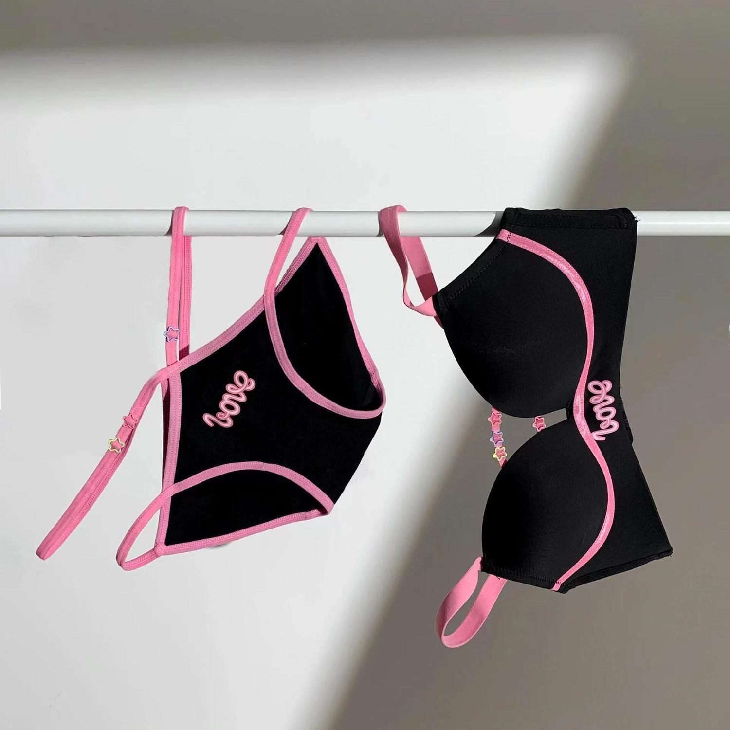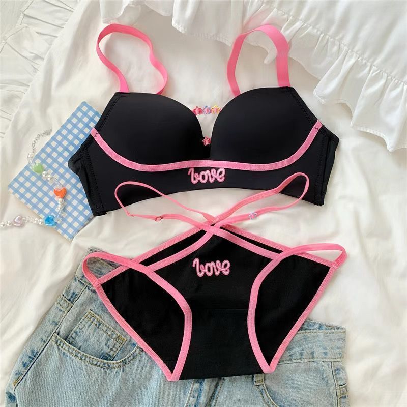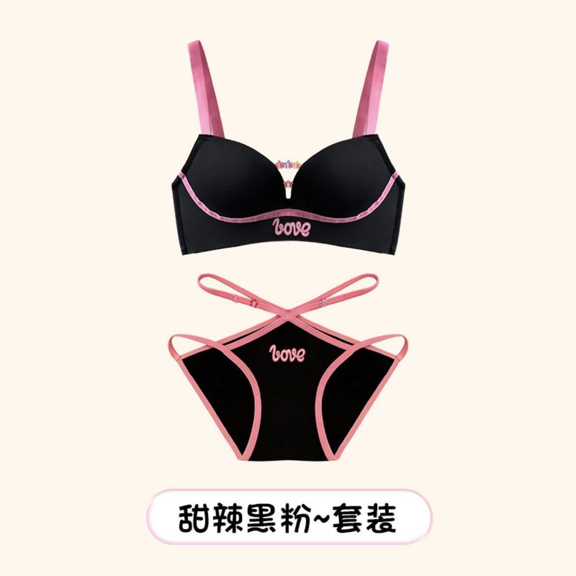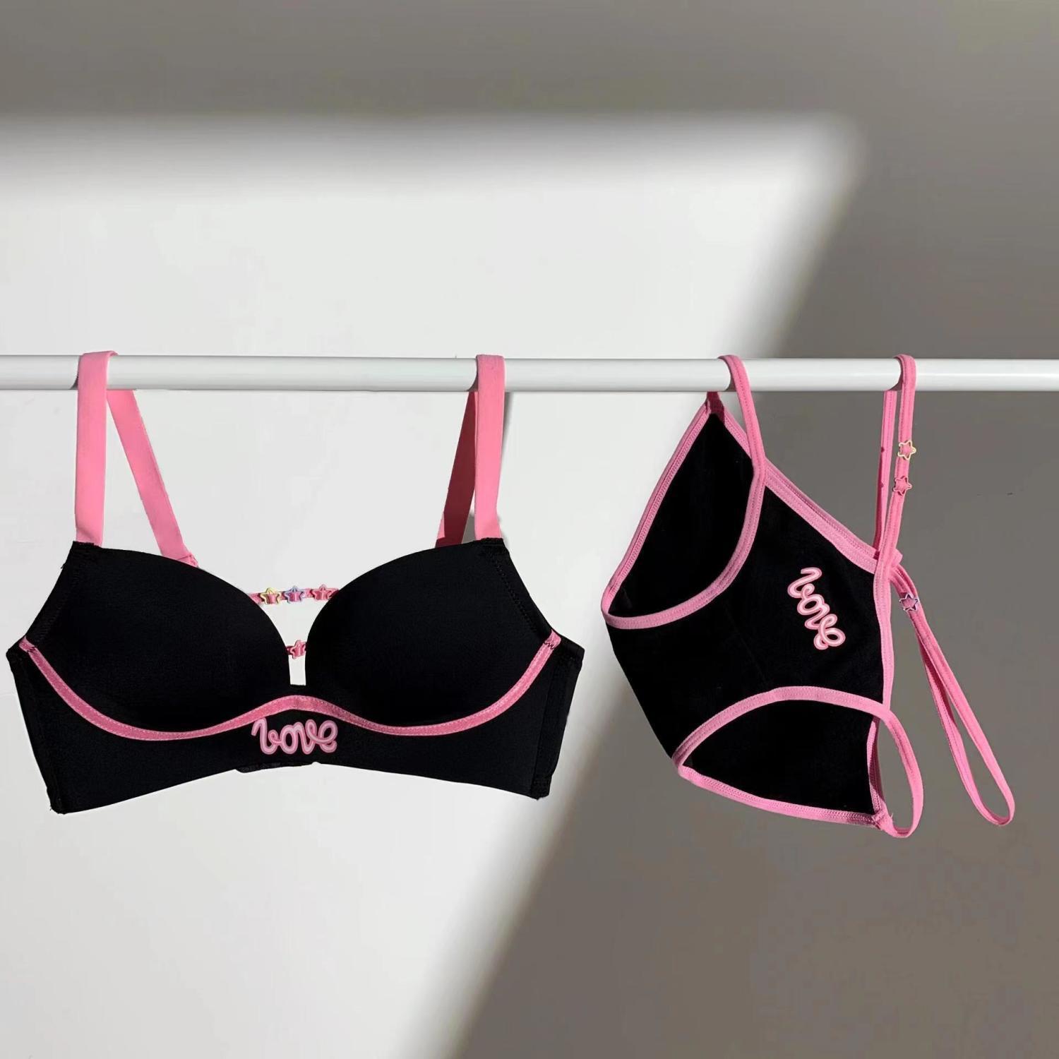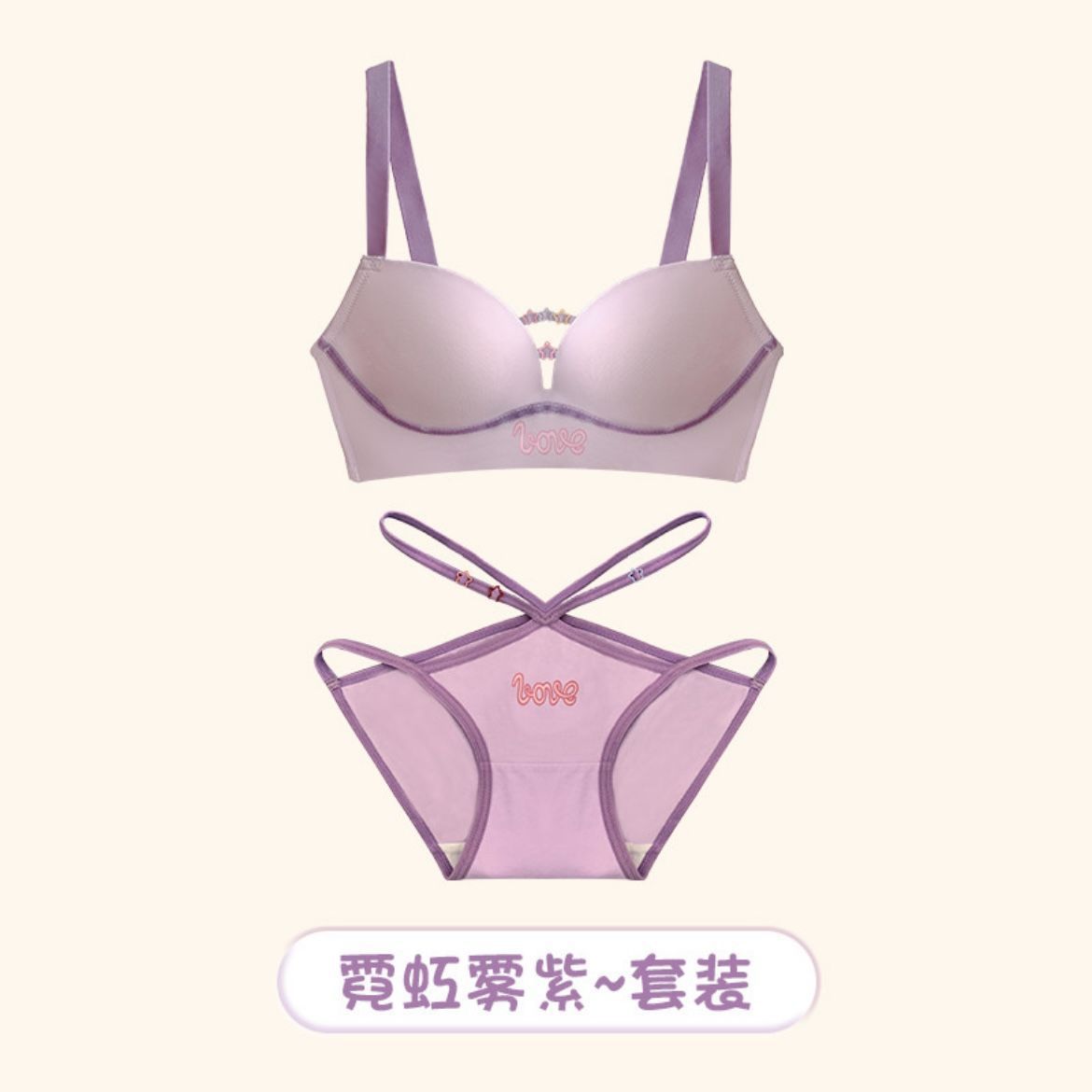 새로운 원피스 소녀의 비 마킹 인쇄 된 브래지어 작은 가슴 푸시 업 대형 비 강철 반지 순수한 섹시한 속옷 세트