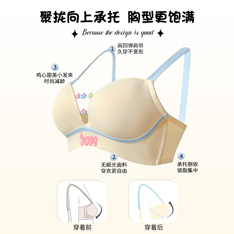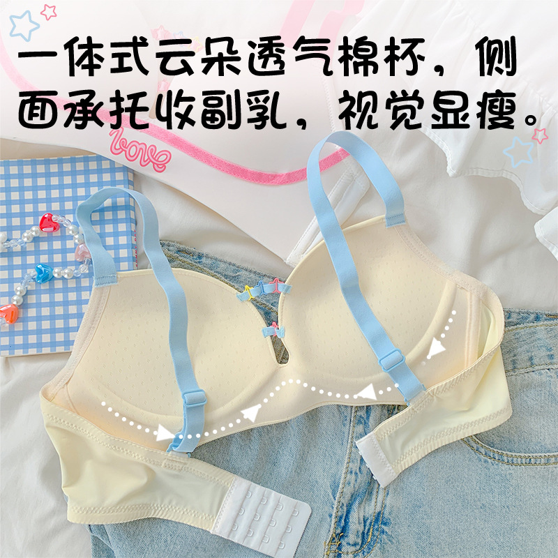 새로운 원피스 소녀의 비 마킹 인쇄 된 브래지어 작은 가슴 푸시 업 대형 비 강철 반지 순수한 섹시한 속옷 세트스토어 가기