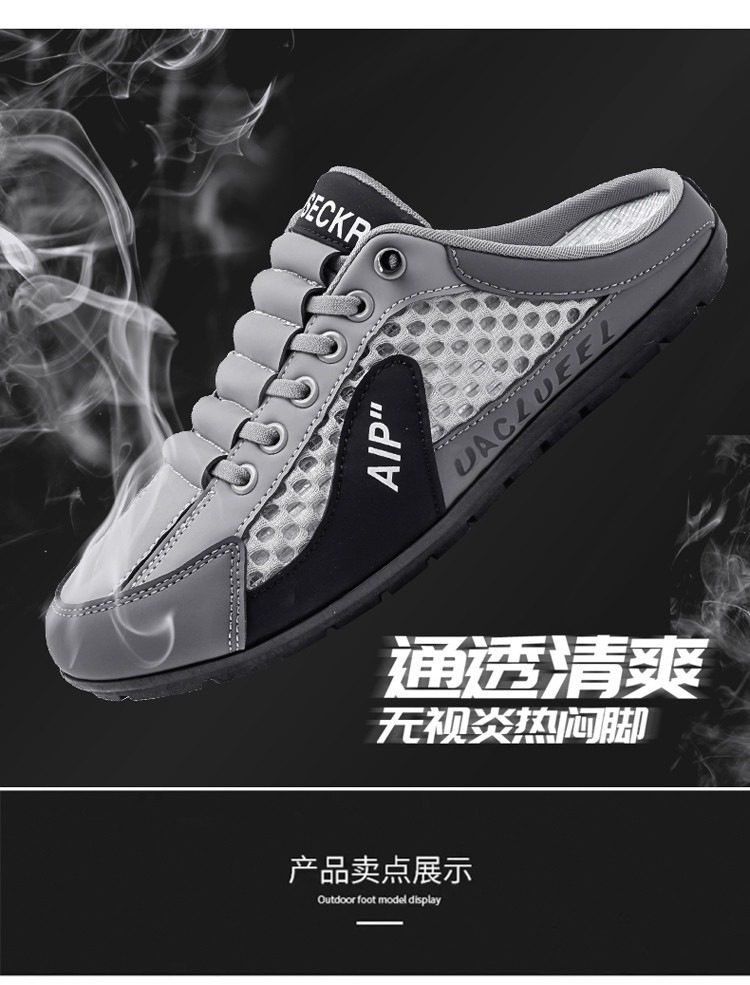 남성용 여름 통기성 메쉬 하프 슬리퍼 야외 게으른 신발 패셔너블 올매치 소프트 솔리드 캐주얼 콩 신발