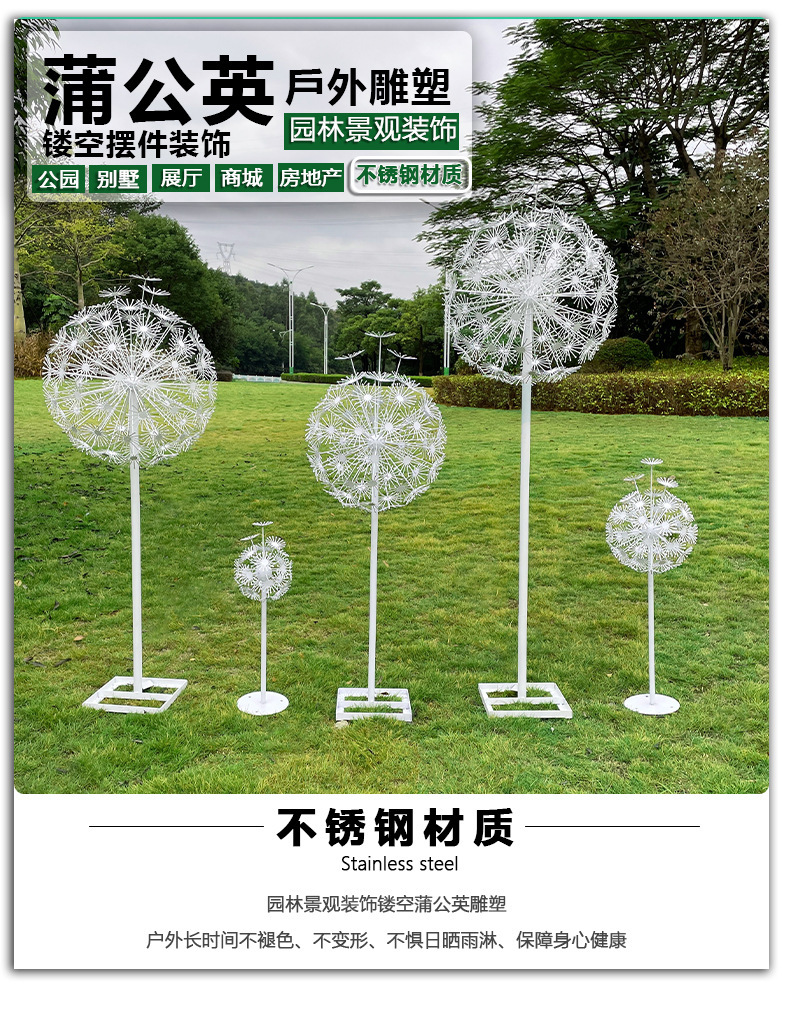 야외 스테인레스 스틸 연철 민들레 조각 시뮬레이션 빛나는 정원 풍경 스케치 부동산 잔디 장식 장식품스토어 가기