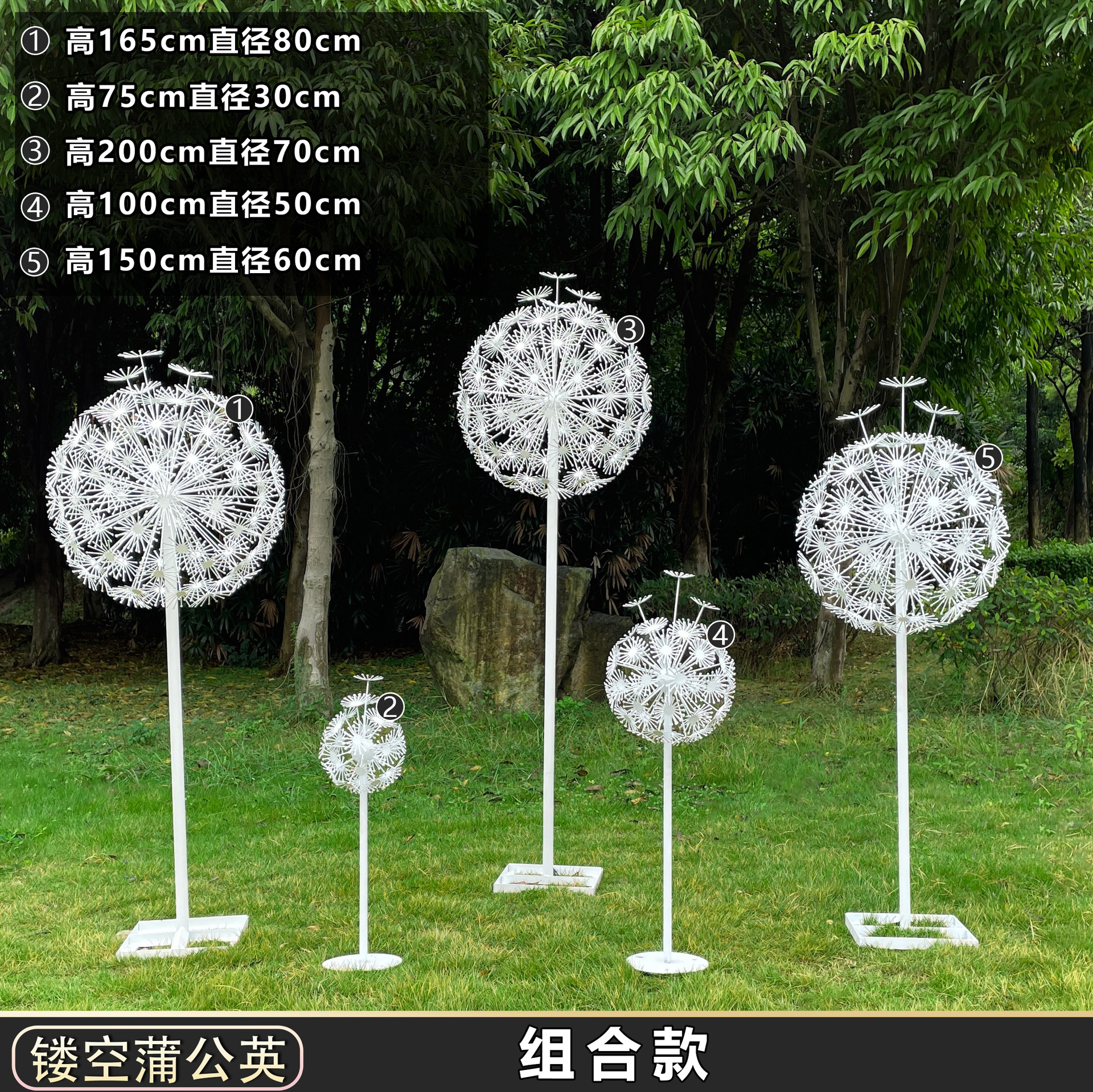 야외 스테인레스 스틸 연철 민들레 조각 시뮬레이션 빛나는 정원 풍경 스케치 부동산 잔디 장식 장식품