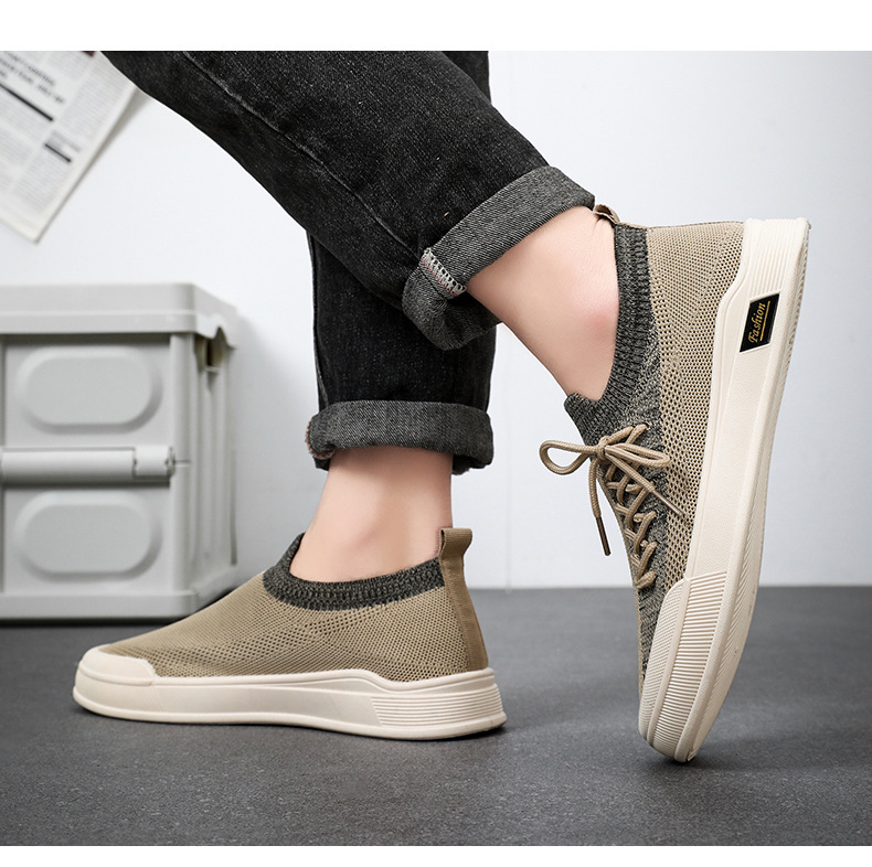 남성 신발 여름 통기성 얇은 날로 짠 메쉬 표면 탈취제 스포츠 캐주얼 스니커즈 십대 슬립 온 양말 메쉬 신발스토어 가기