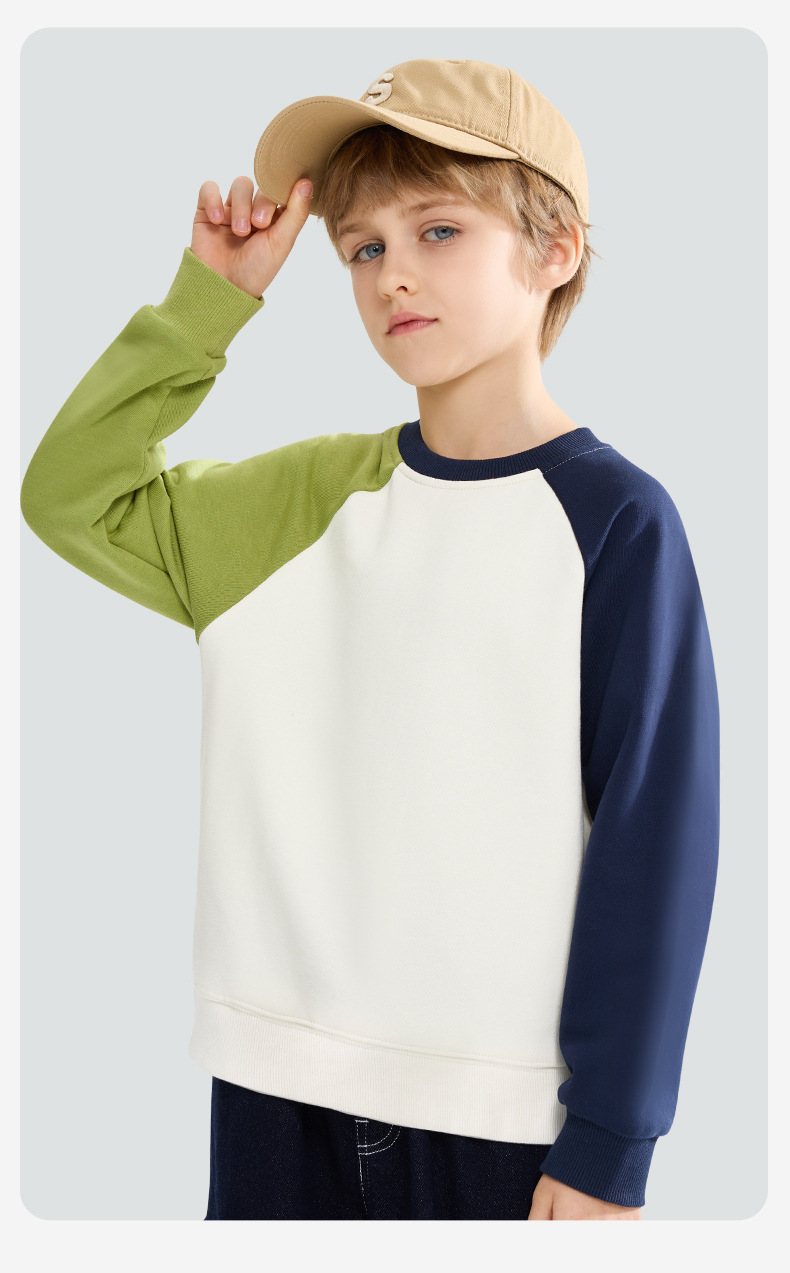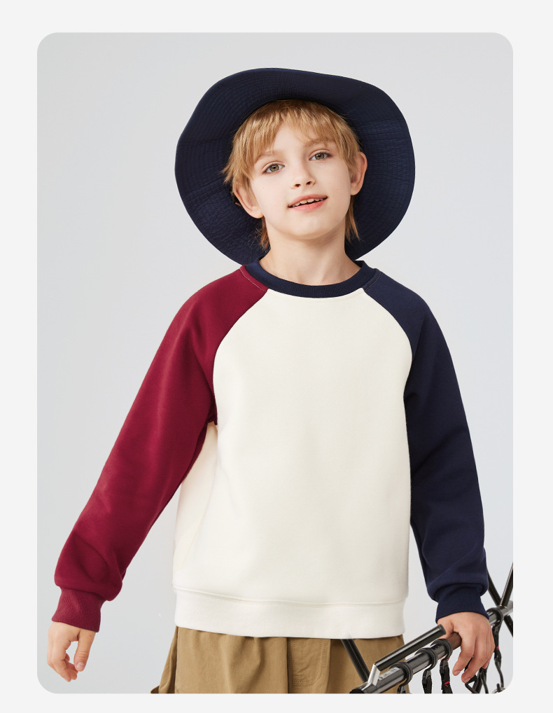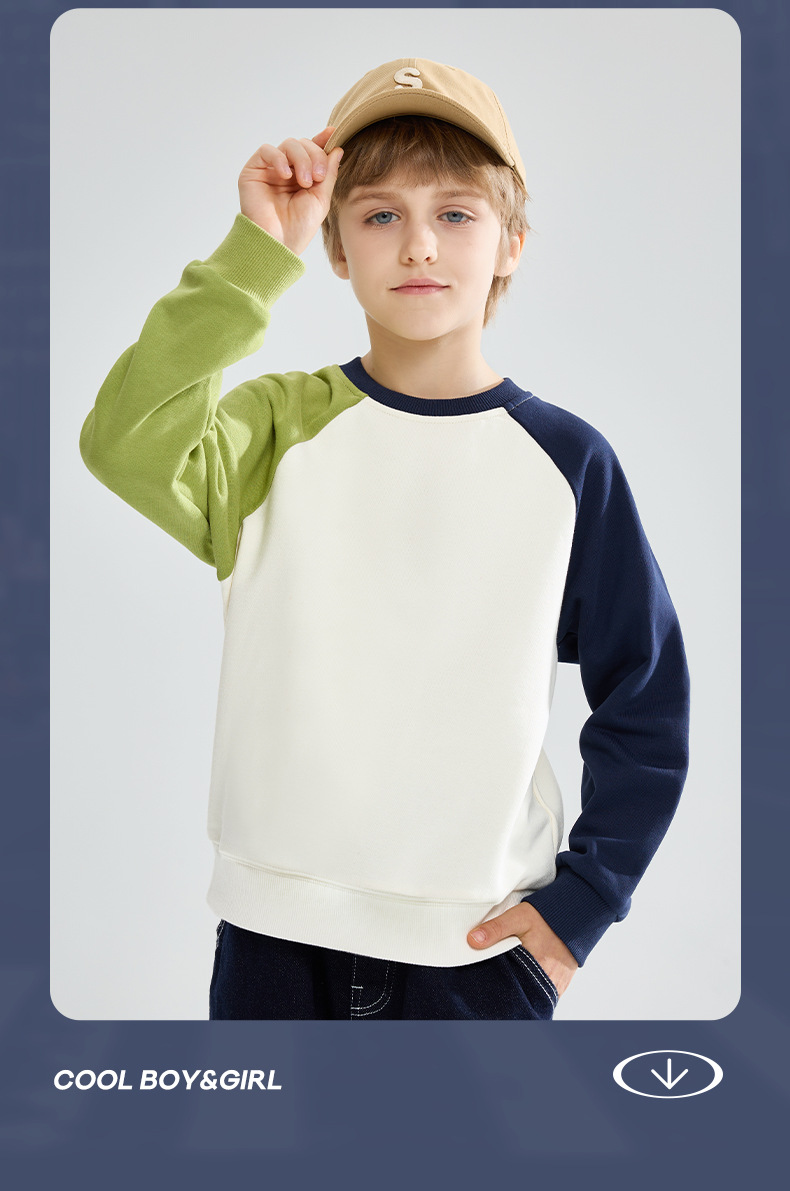 소년 소녀 기모 마카 색 대비 풀오버 땀 따뜻한 땀 라슬란 긴 소매 유행 올 매치
