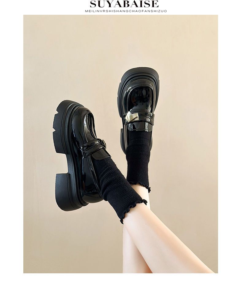 검은 두꺼운 밑창 영국식 가죽 신발 여성의 2025 봄 새로운 올 매치 슬립 온 로퍼 여성의 메리 제인 신발스토어 가기