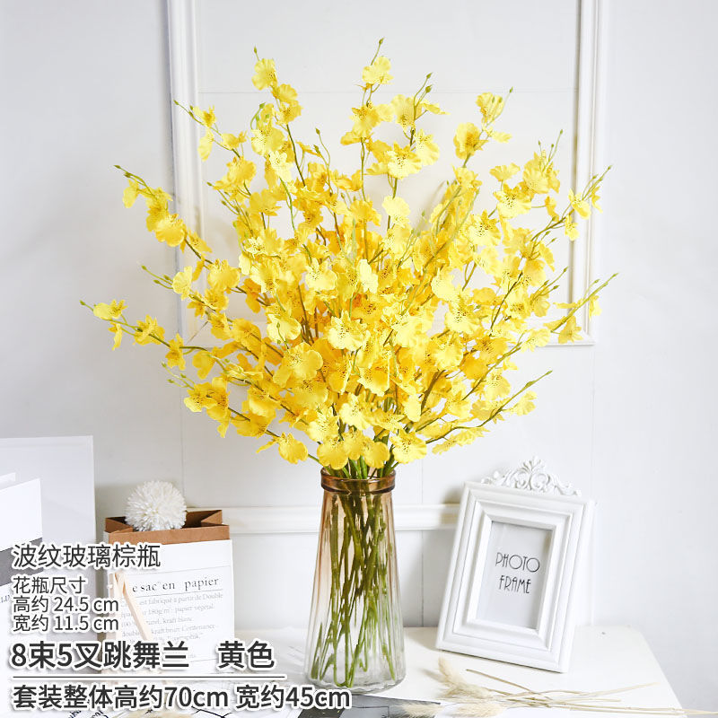 • 8개 묶음, 5개 갈래 춤추는 난초 노란색 + 골판지 유리 갈색 병