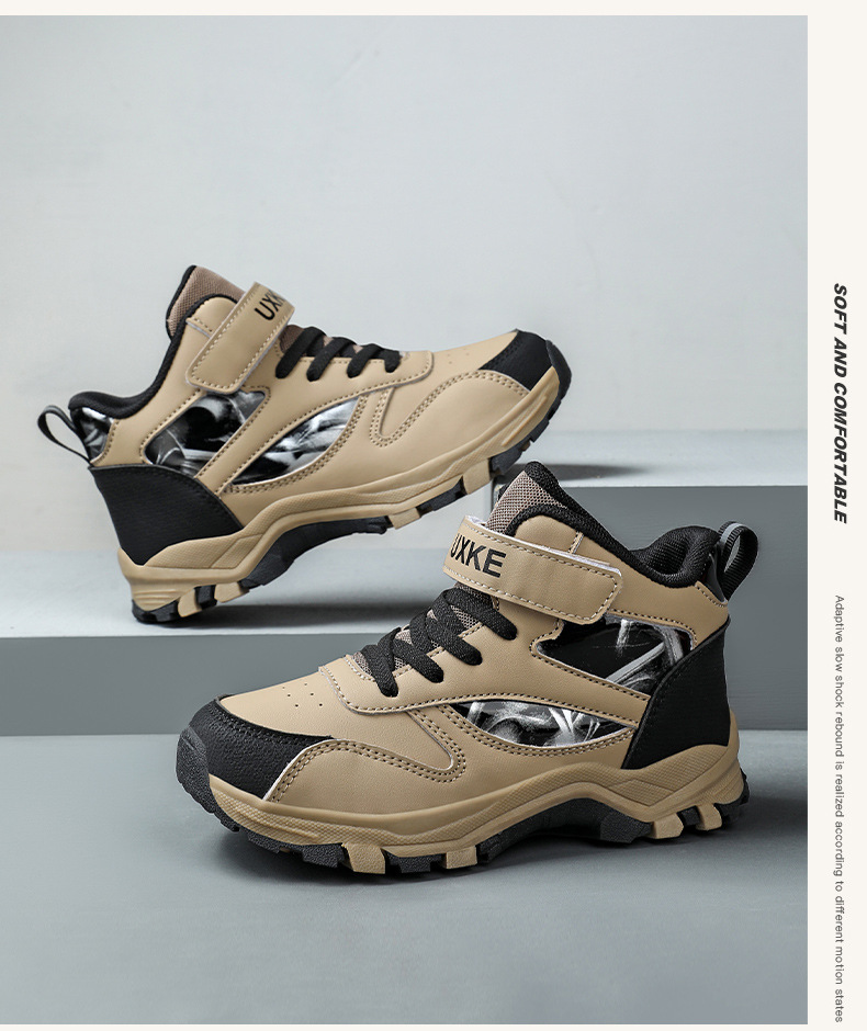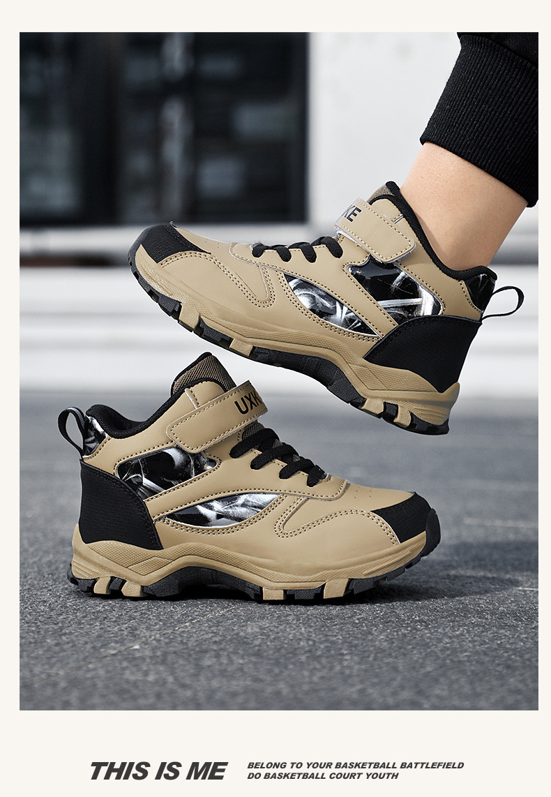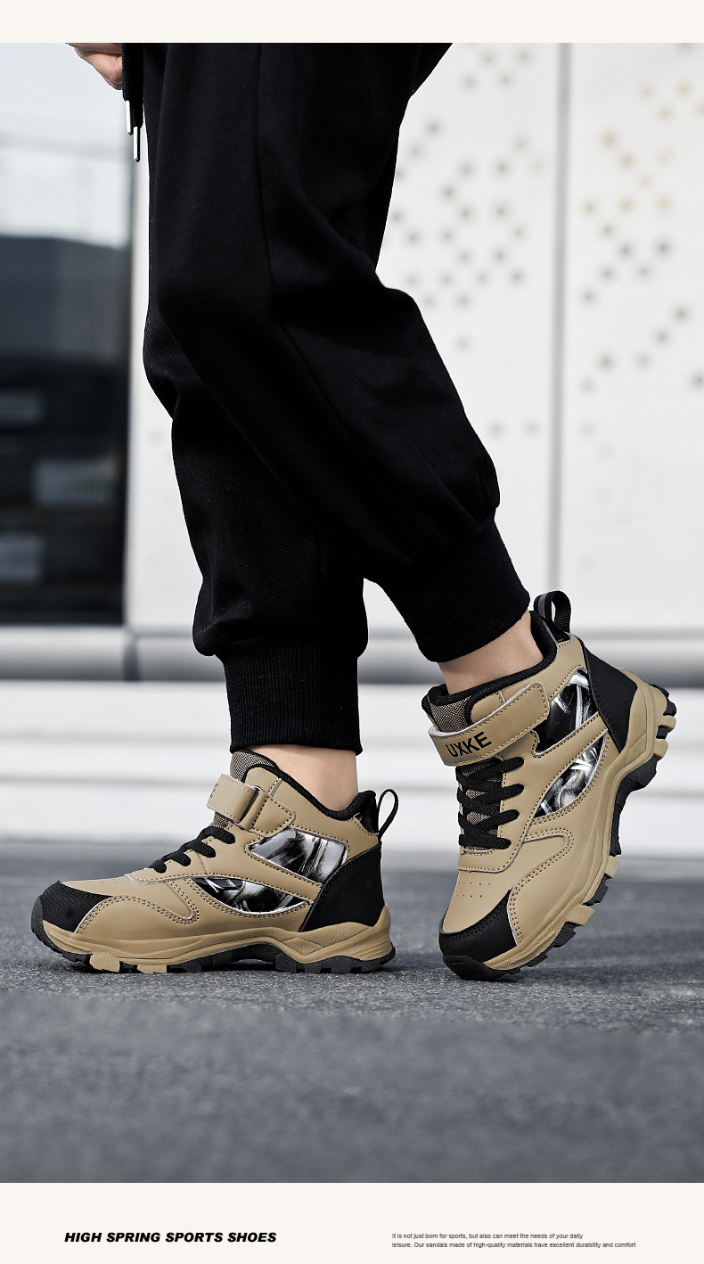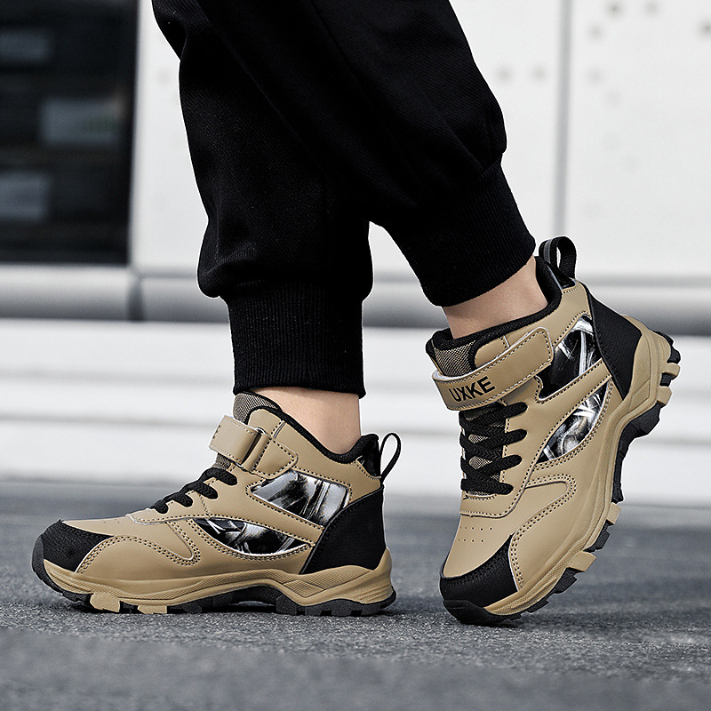 대외 무역용 아동 스포츠화, 봄철 가죽 소재 내마모성 남아 하이탑 미끄럼 방지 등산화, 해외 인기 트렌드