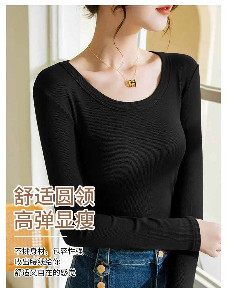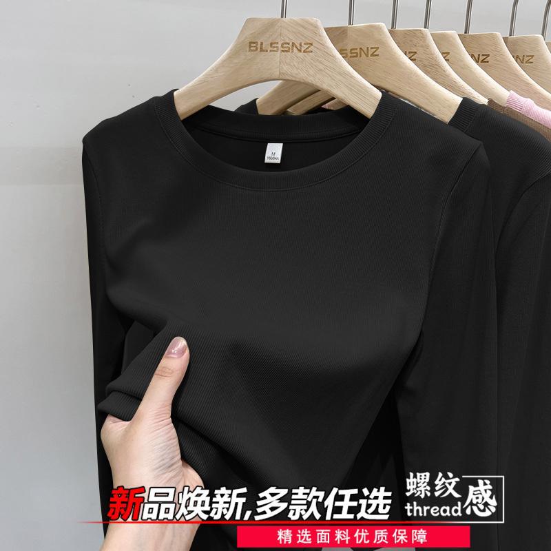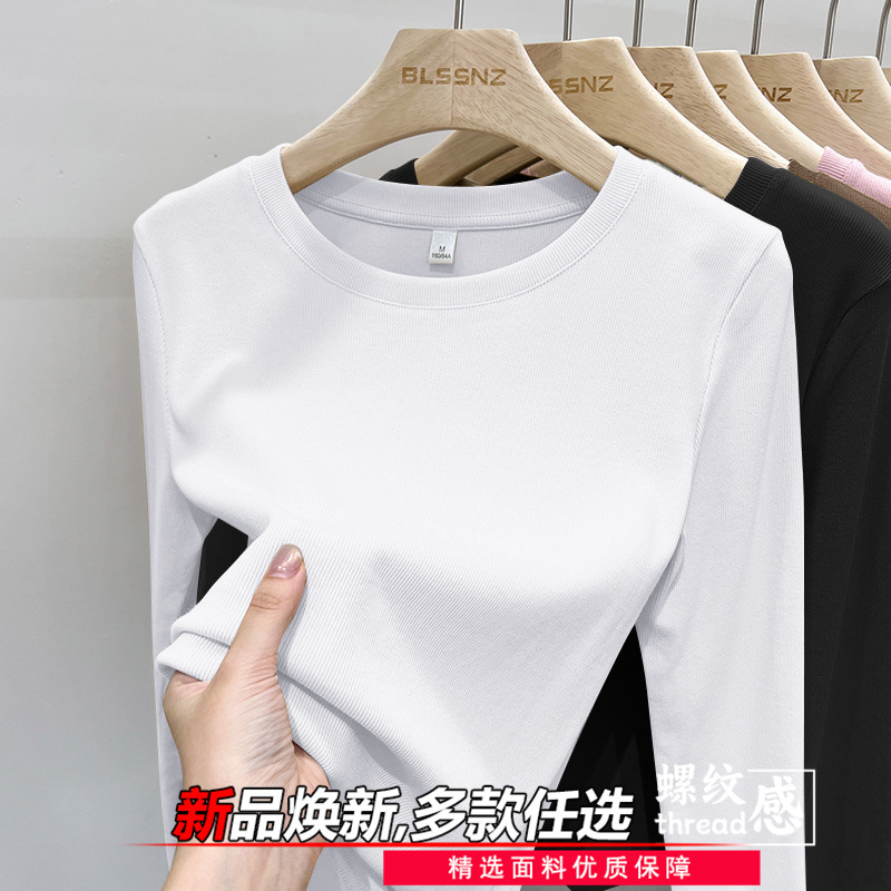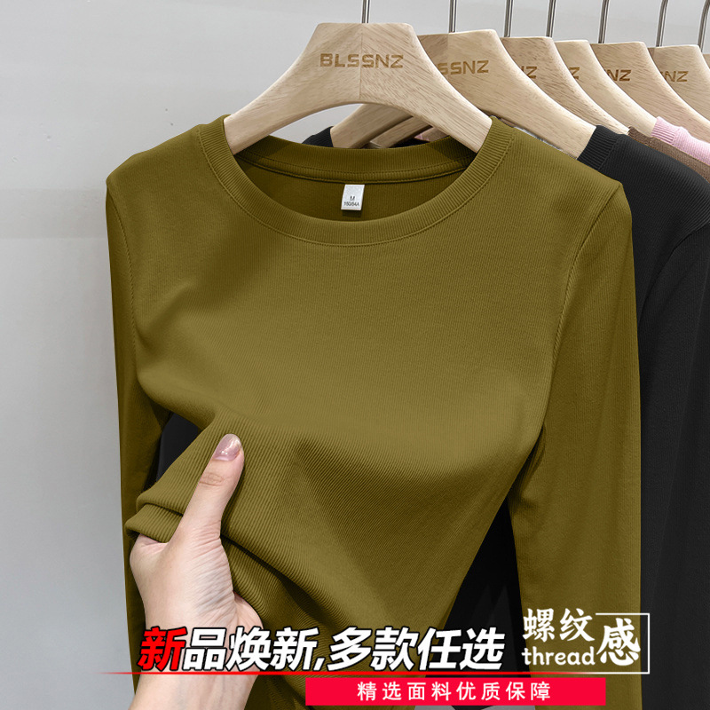가을과 겨울 새로운 대형 라운드 넥 스레드 얇은 베이스 셔츠 여성용 내부 슬림 핏 긴팔 티셔츠 세련된 패션 탑스토어 가기