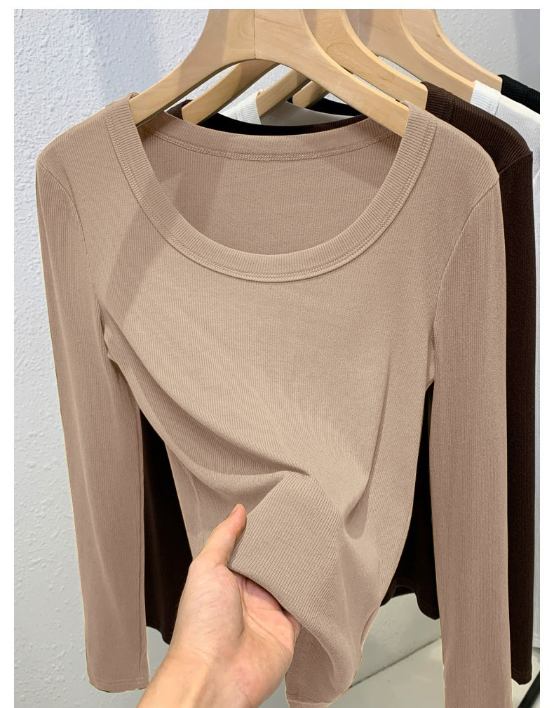가을과 겨울 새로운 대형 라운드 넥 스레드 얇은 베이스 셔츠 여성용 내부 슬림 핏 긴팔 티셔츠 세련된 패션 탑