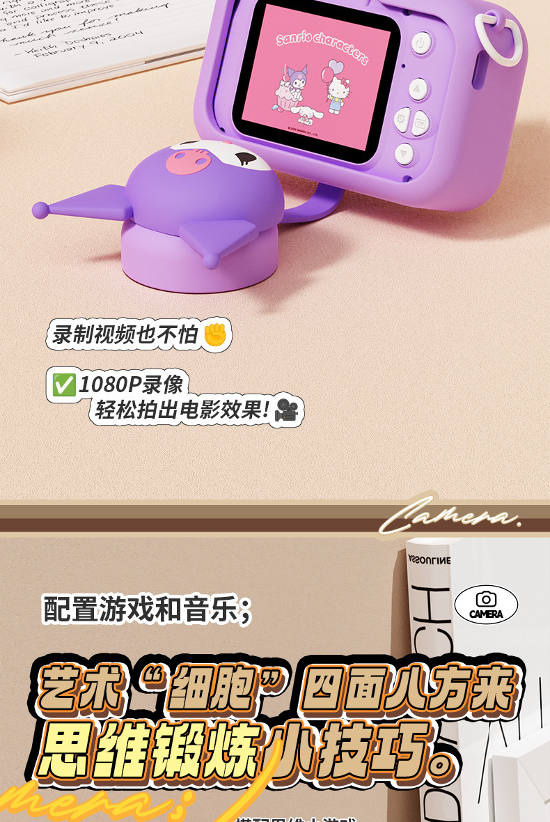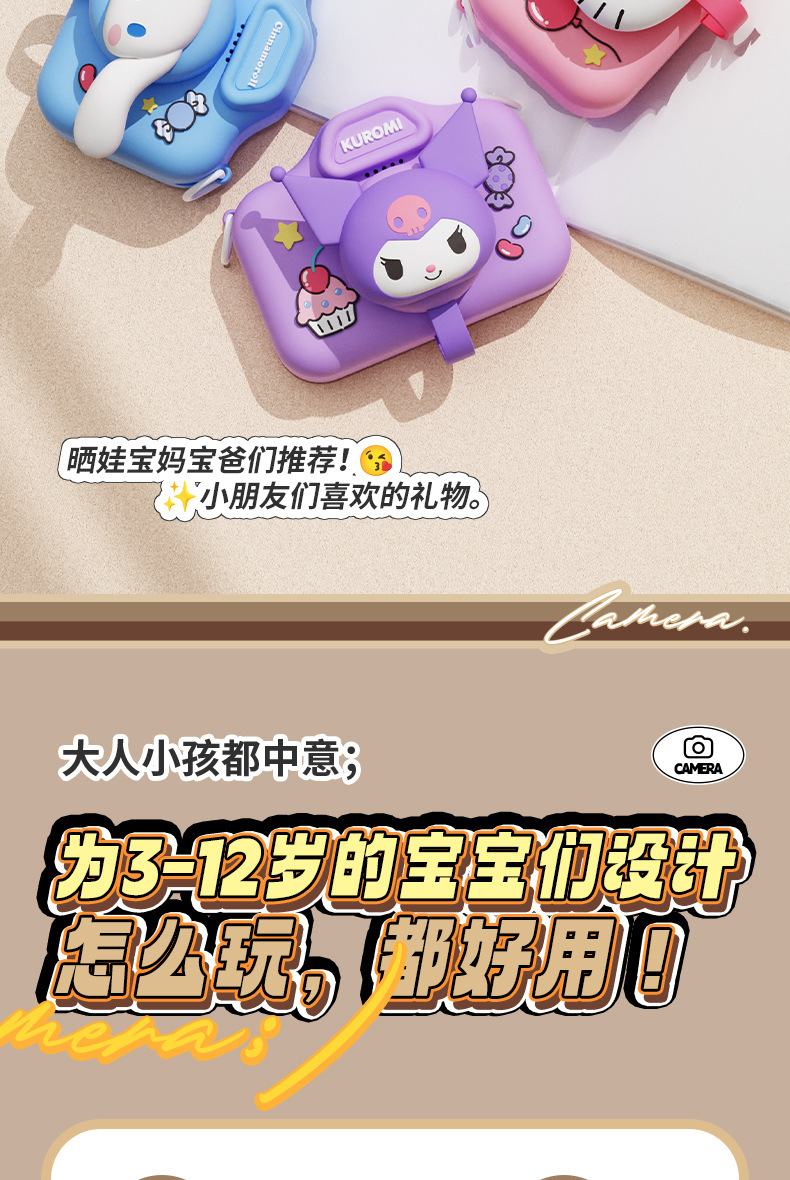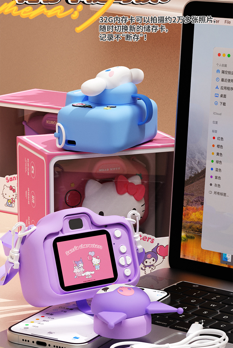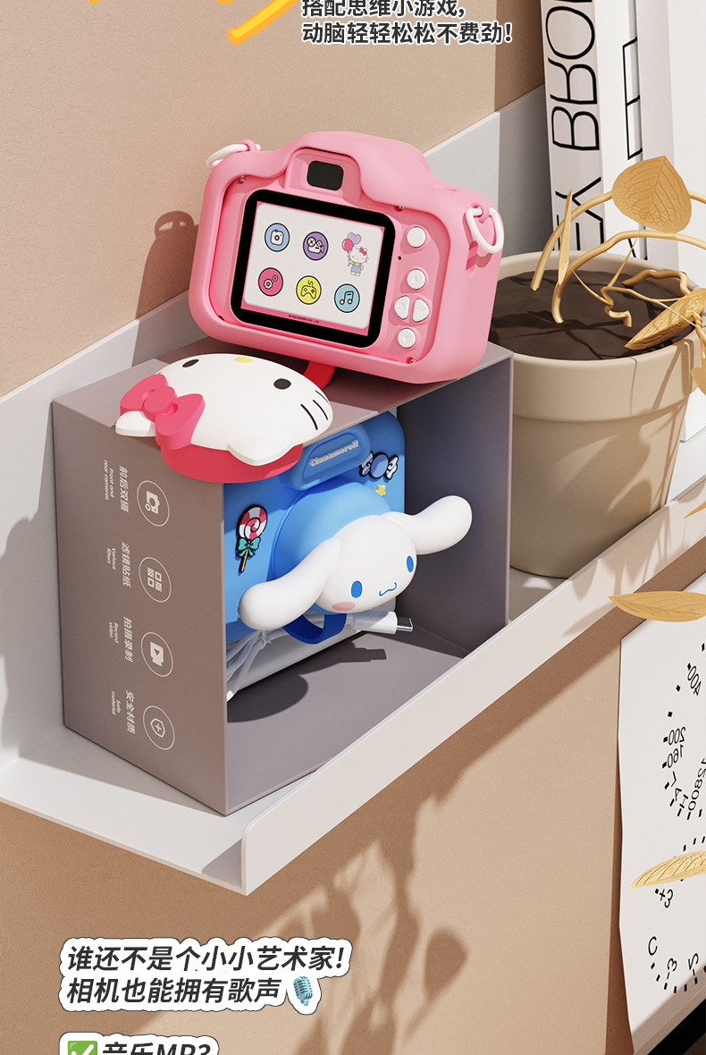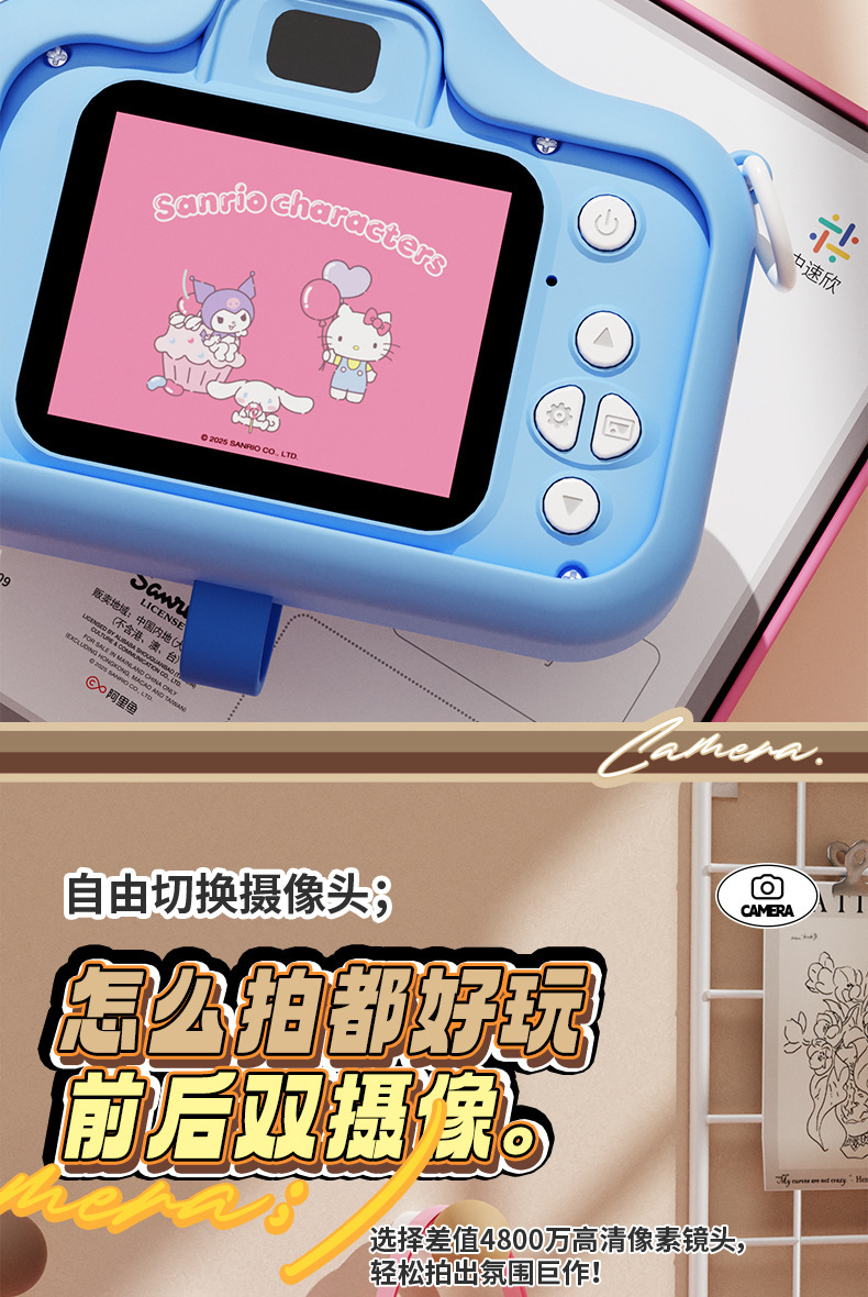 정품 산리오 공인 어린이 카메라 HD 더블 카메라 어린이 재미있는 장난감 선물 조수 장난감 카메라