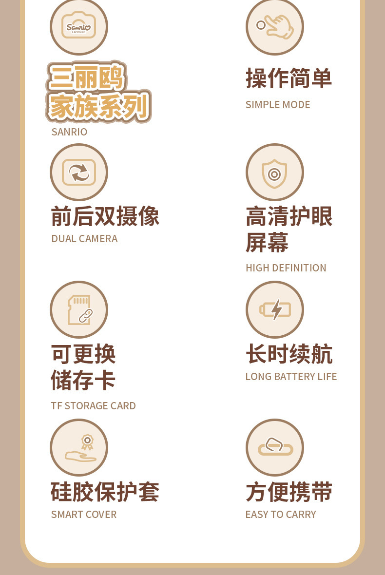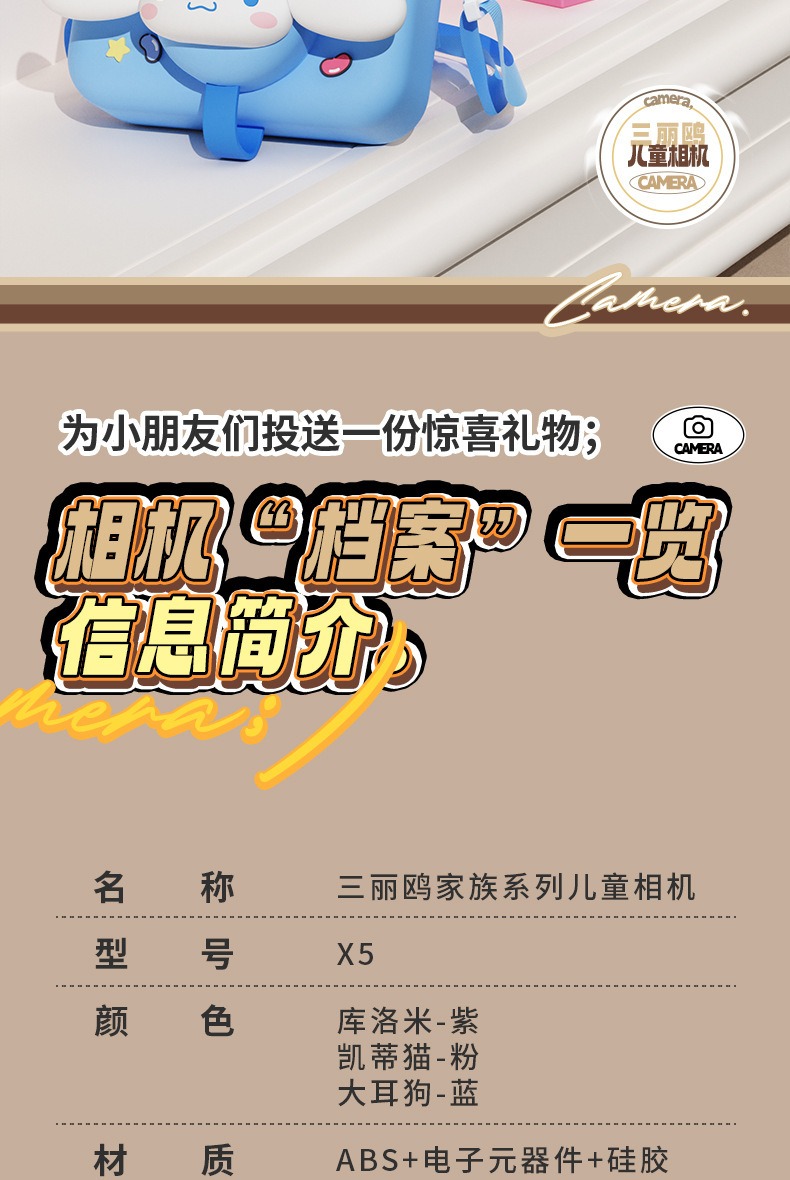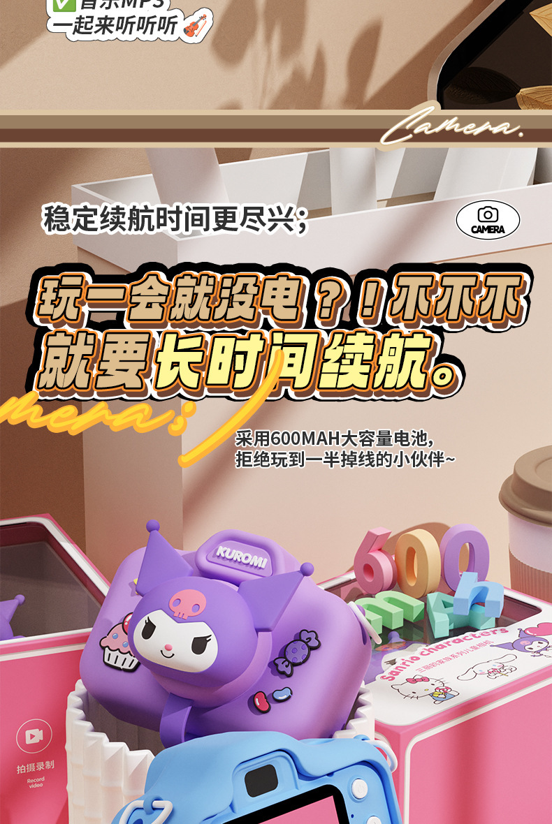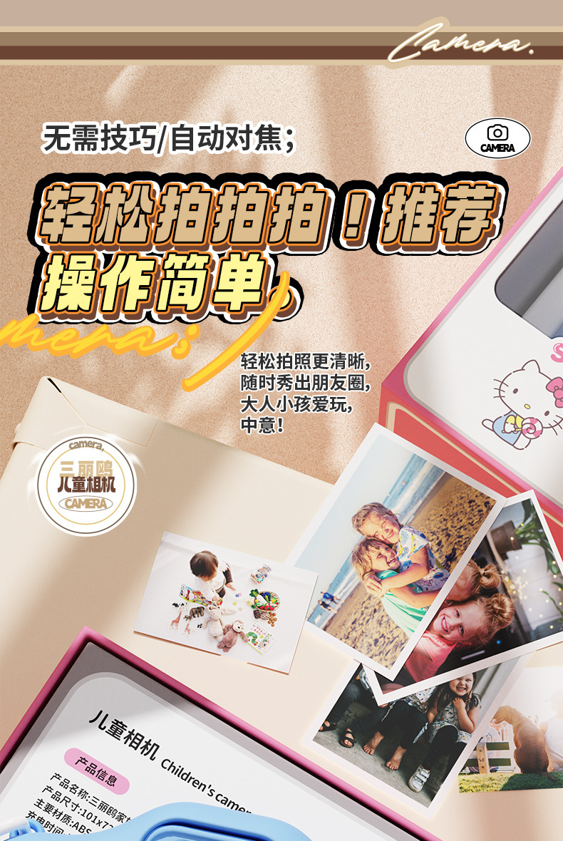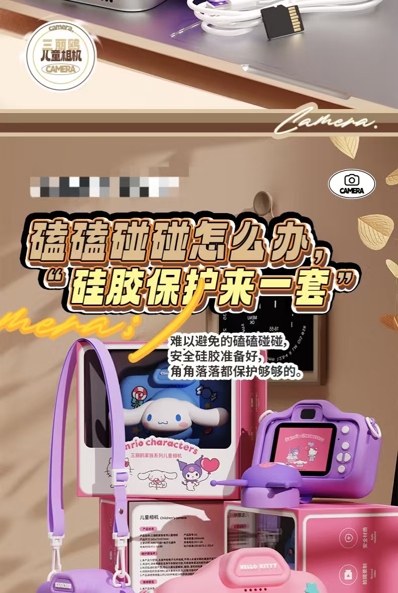 정품 산리오 공인 어린이 카메라 HD 더블 카메라 어린이 재미있는 장난감 선물 조수 장난감 카메라