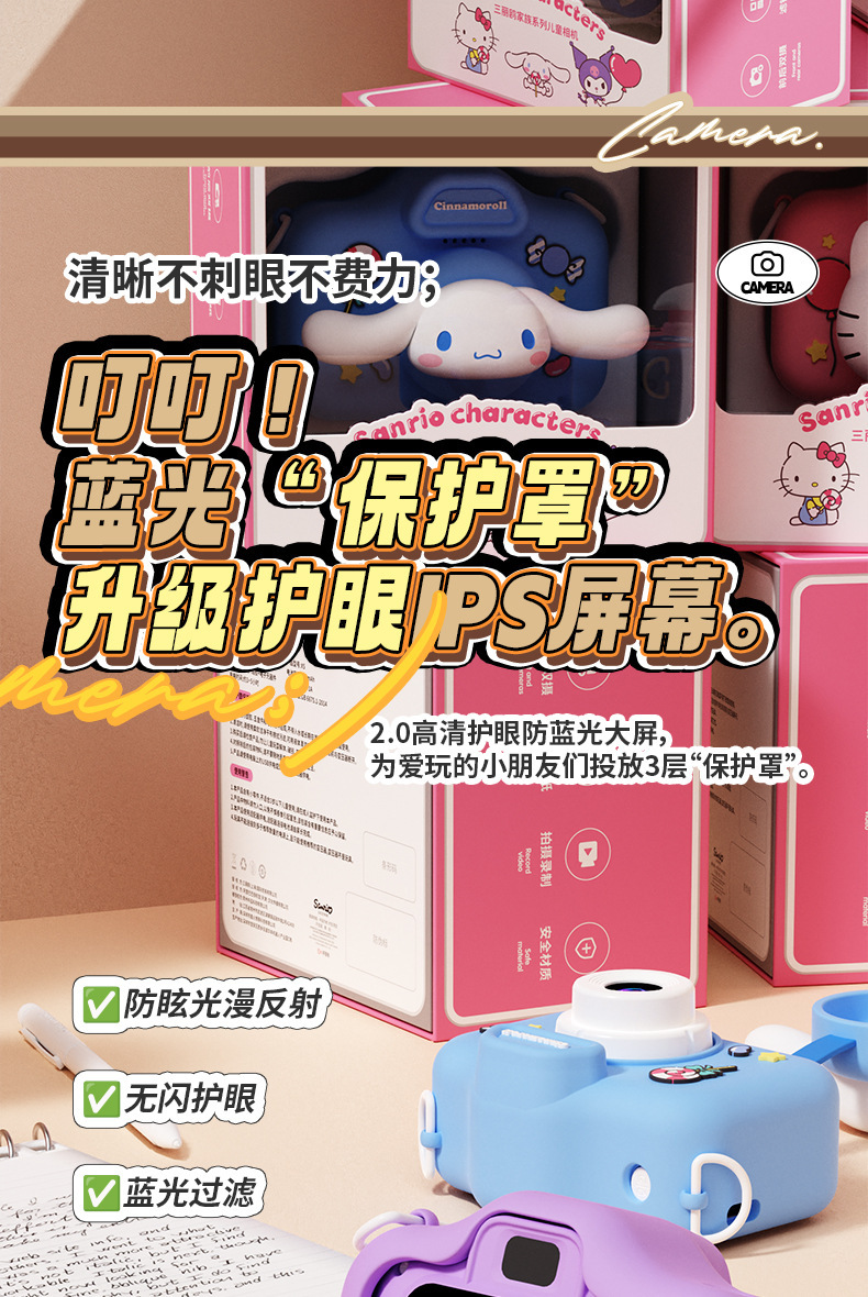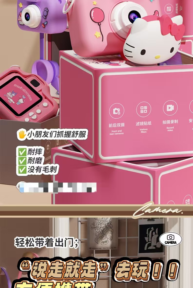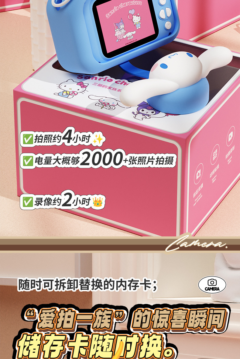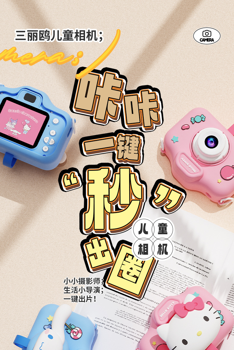 정품 산리오 공인 어린이 카메라 HD 더블 카메라 어린이 재미있는 장난감 선물 조수 장난감 카메라스토어 가기