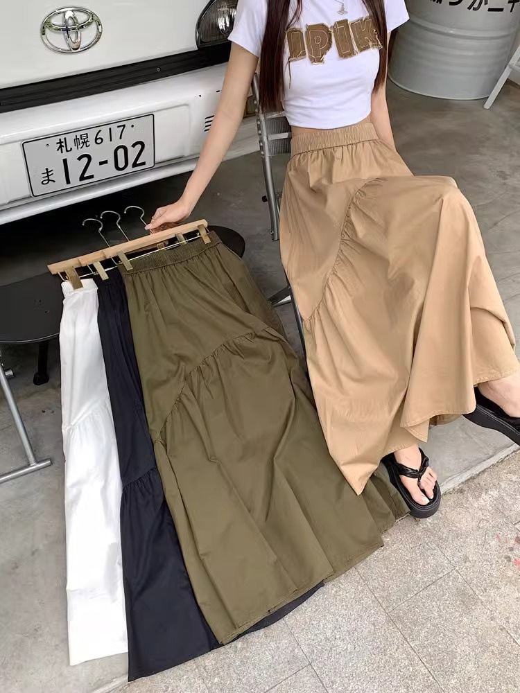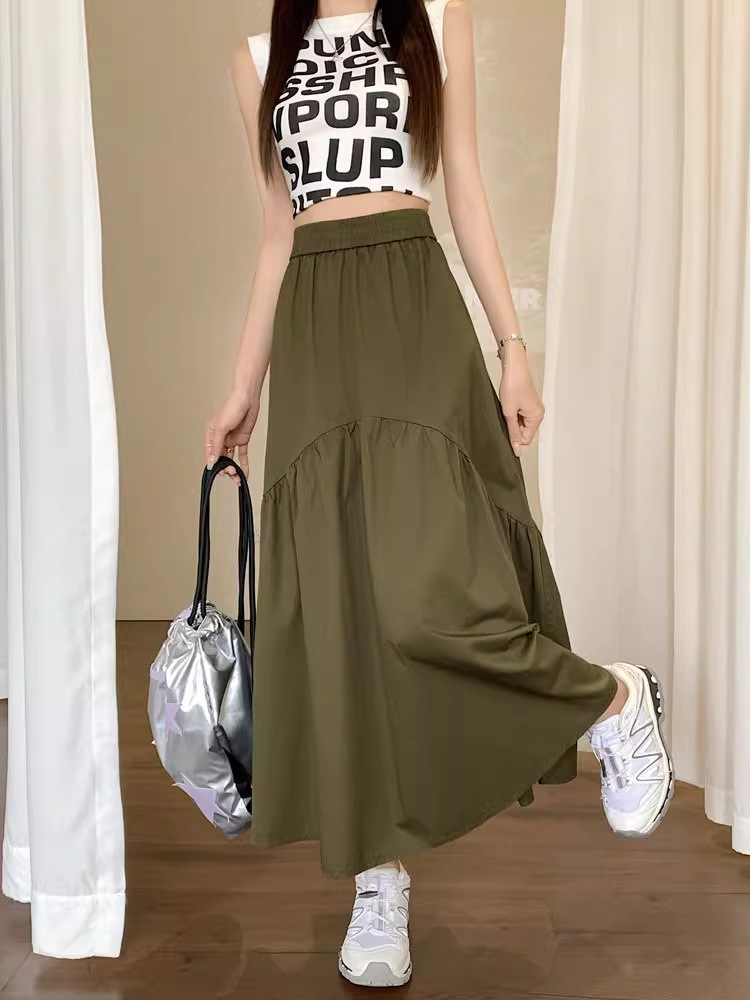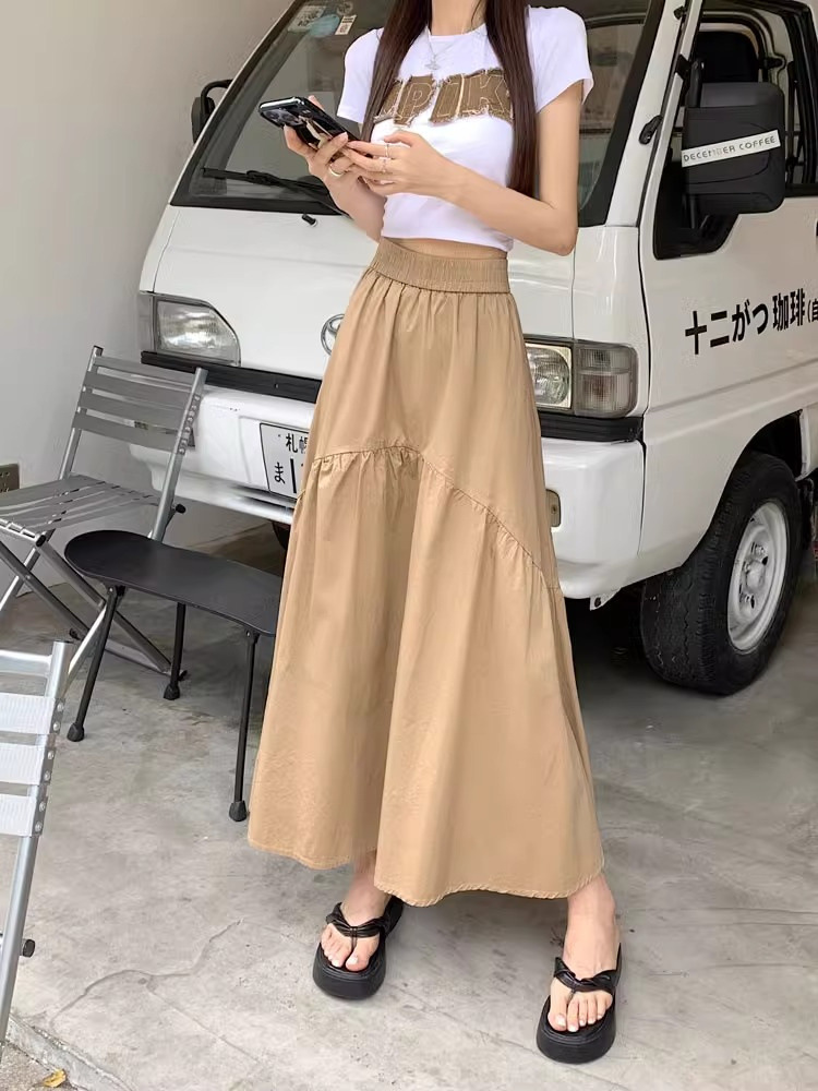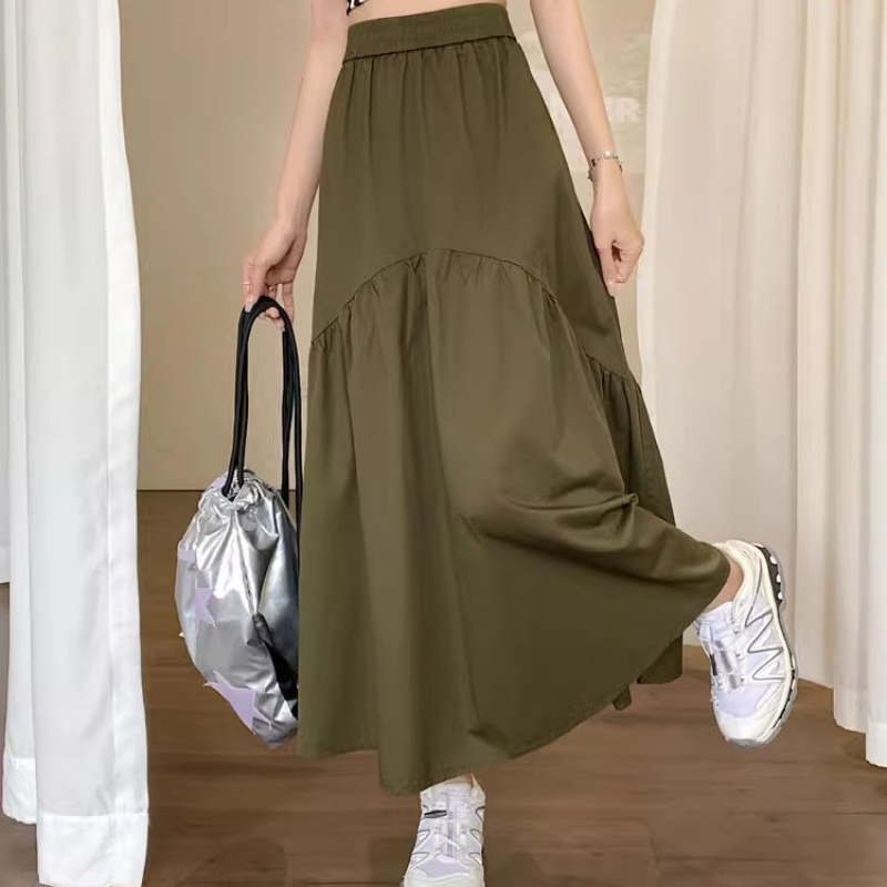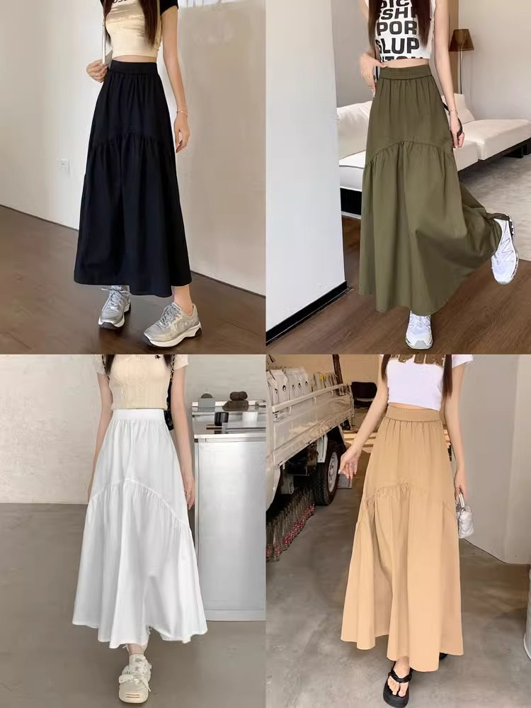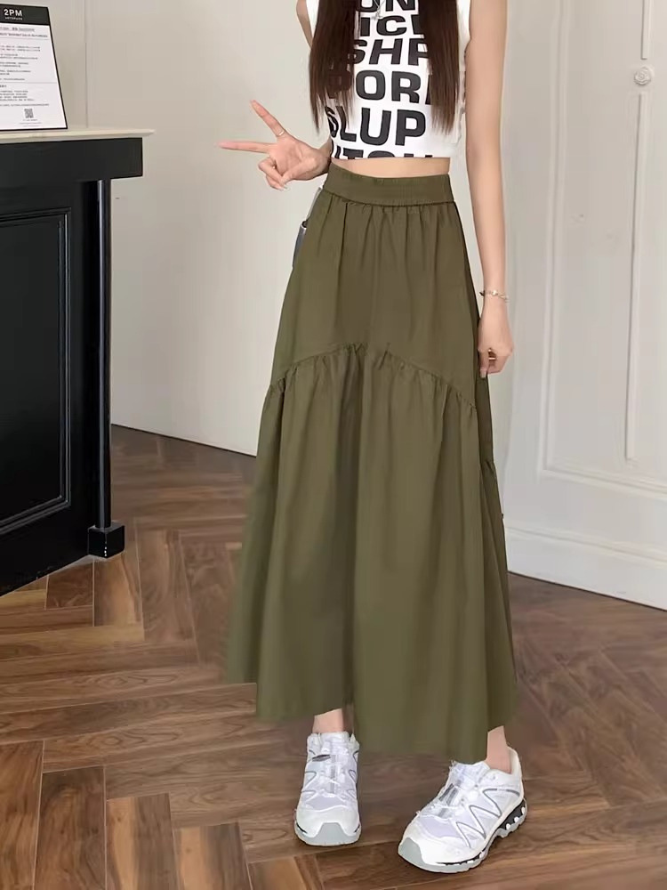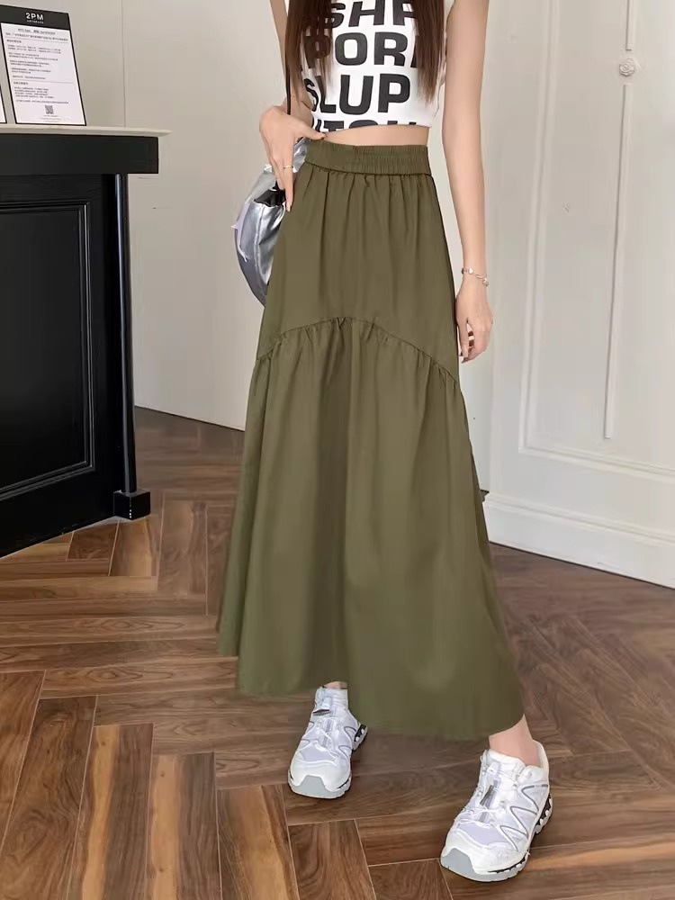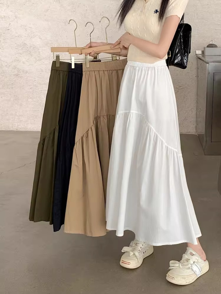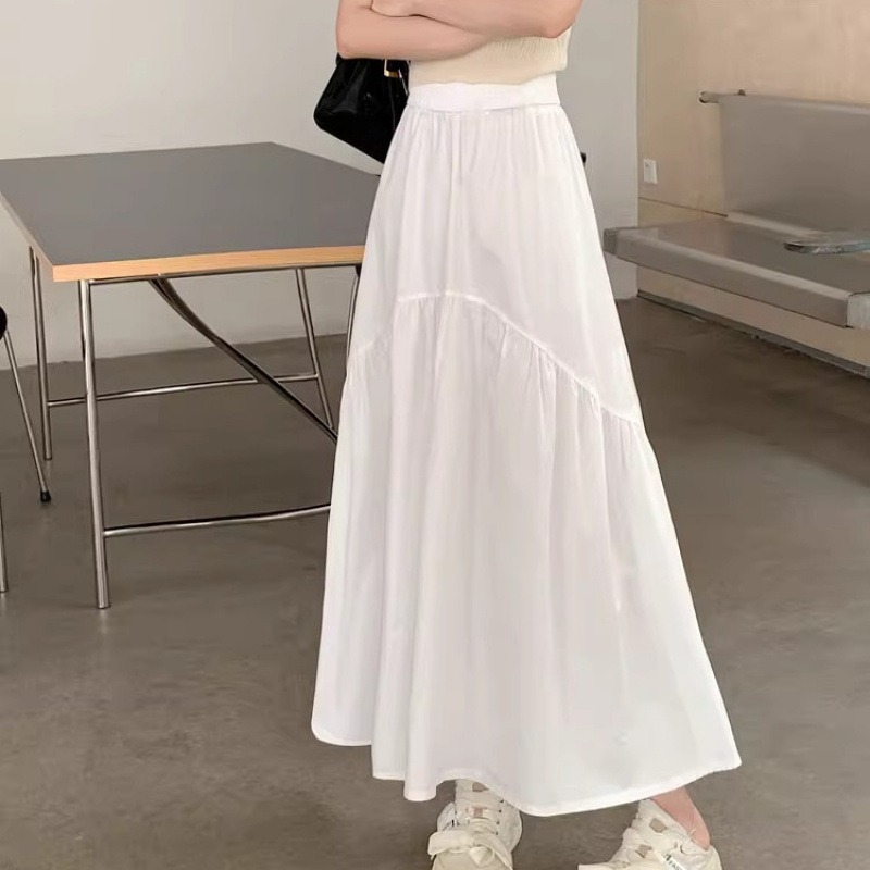 작은 여자 치마 2025 여름 새로운 한국 스타일 유행 디자인 긴 치마를 풀고 허리를 느슨하게스토어 가기