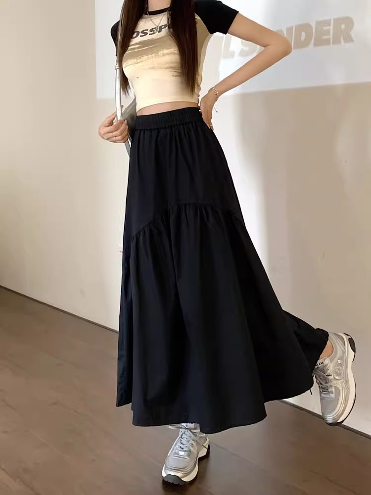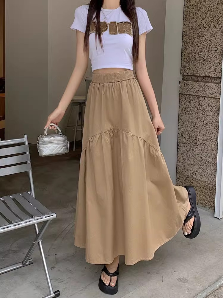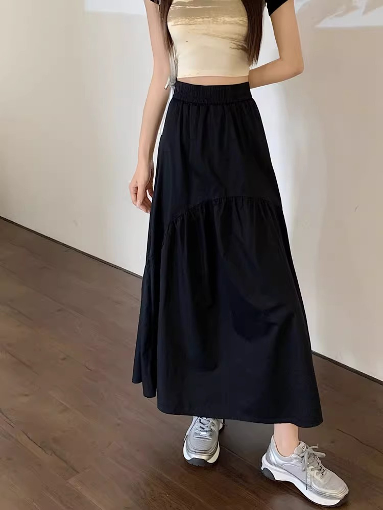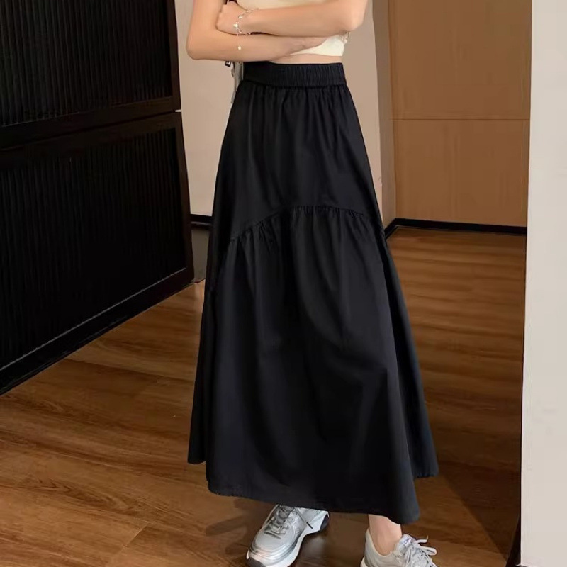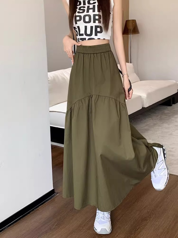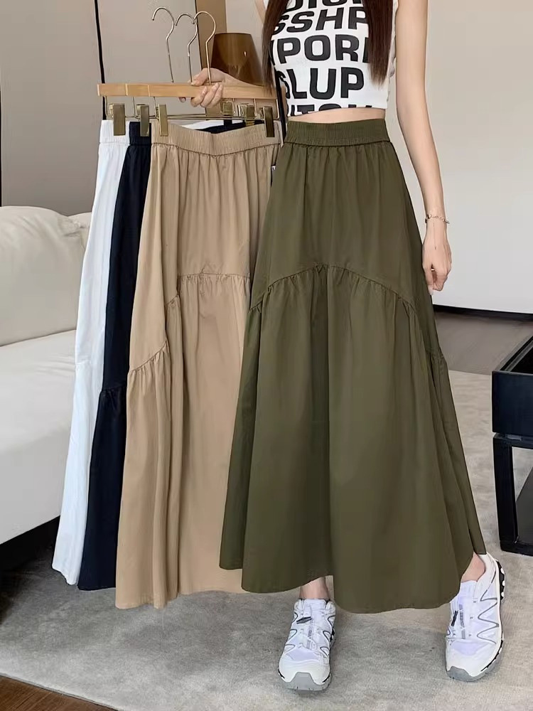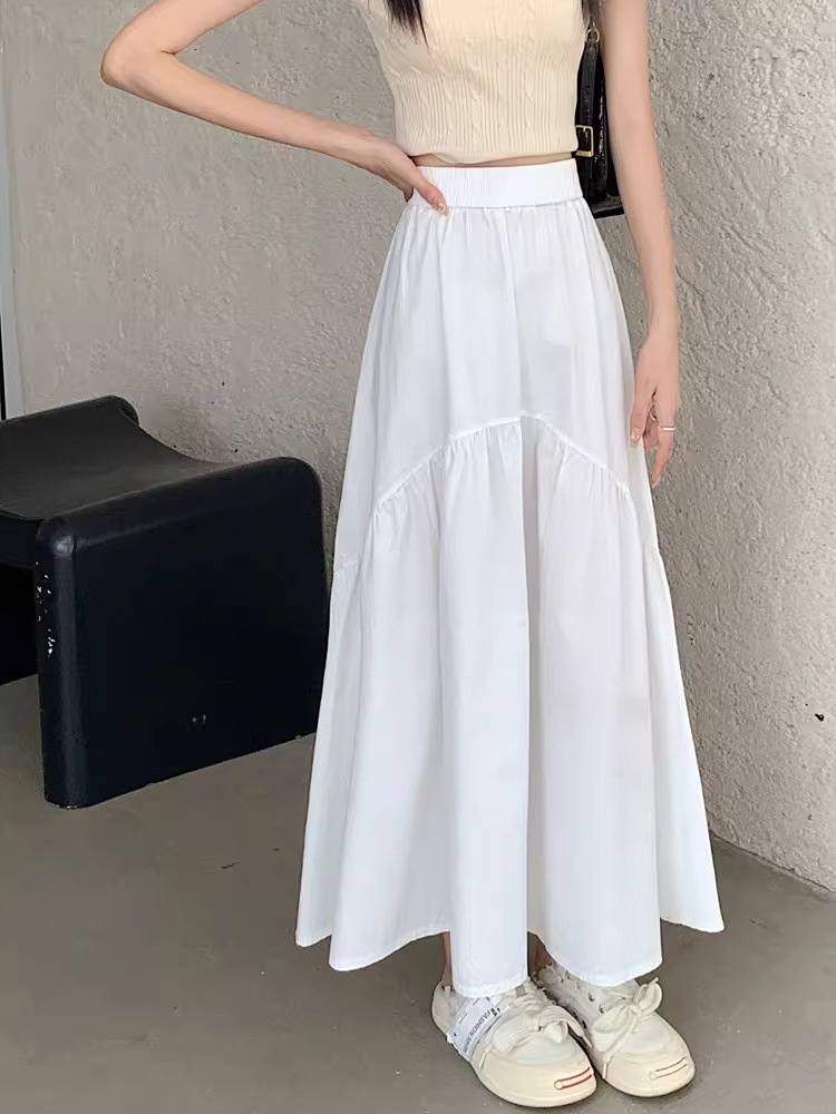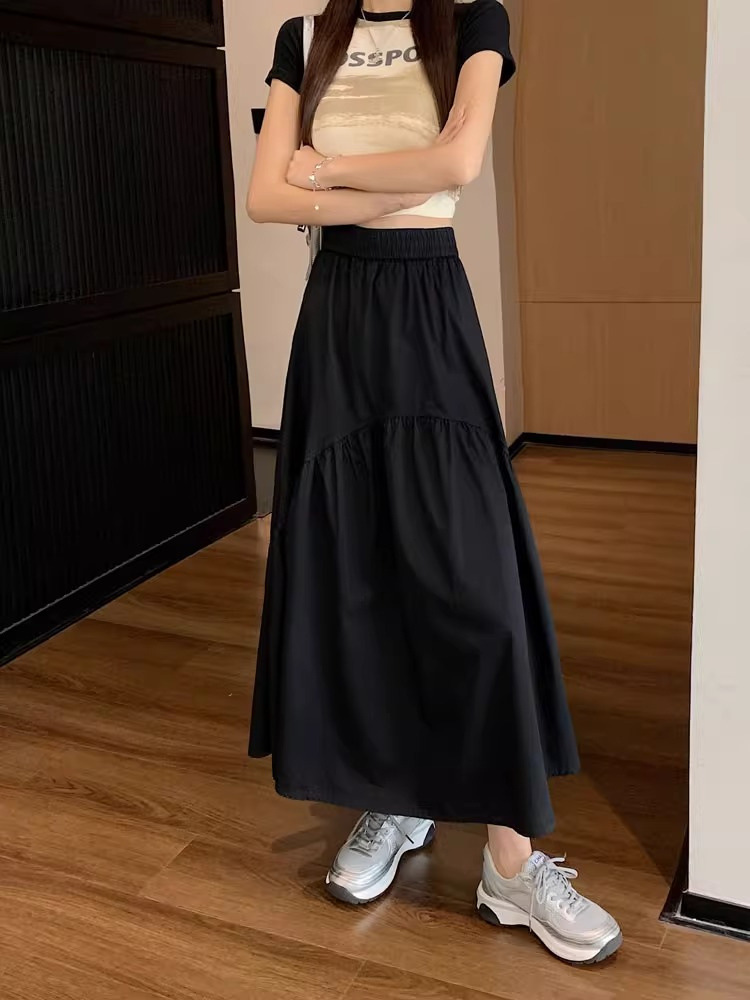 작은 여자 치마 2025 여름 새로운 한국 스타일 유행 디자인 긴 치마를 풀고 허리를 느슨하게스토어 가기