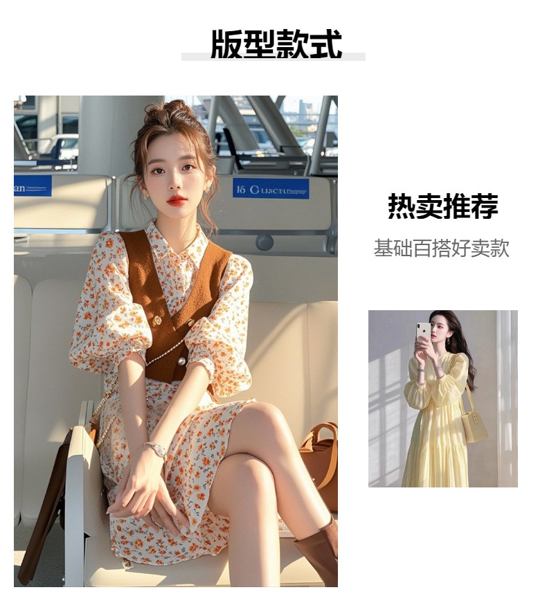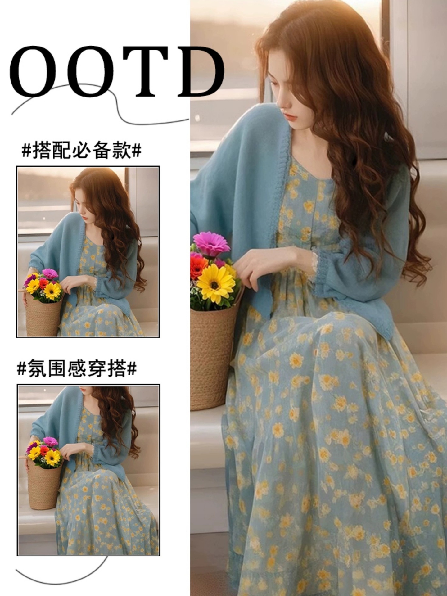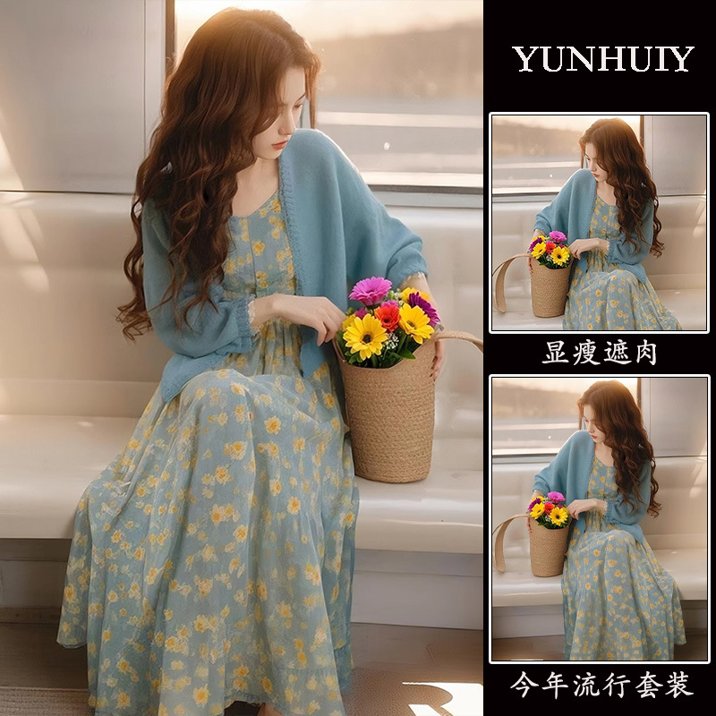 봄 여성의 2025 새로운 슈퍼 핫 엔드 향수 부드러운 나이 감소 슬리밍 꽃 원피스 세트스토어 가기
