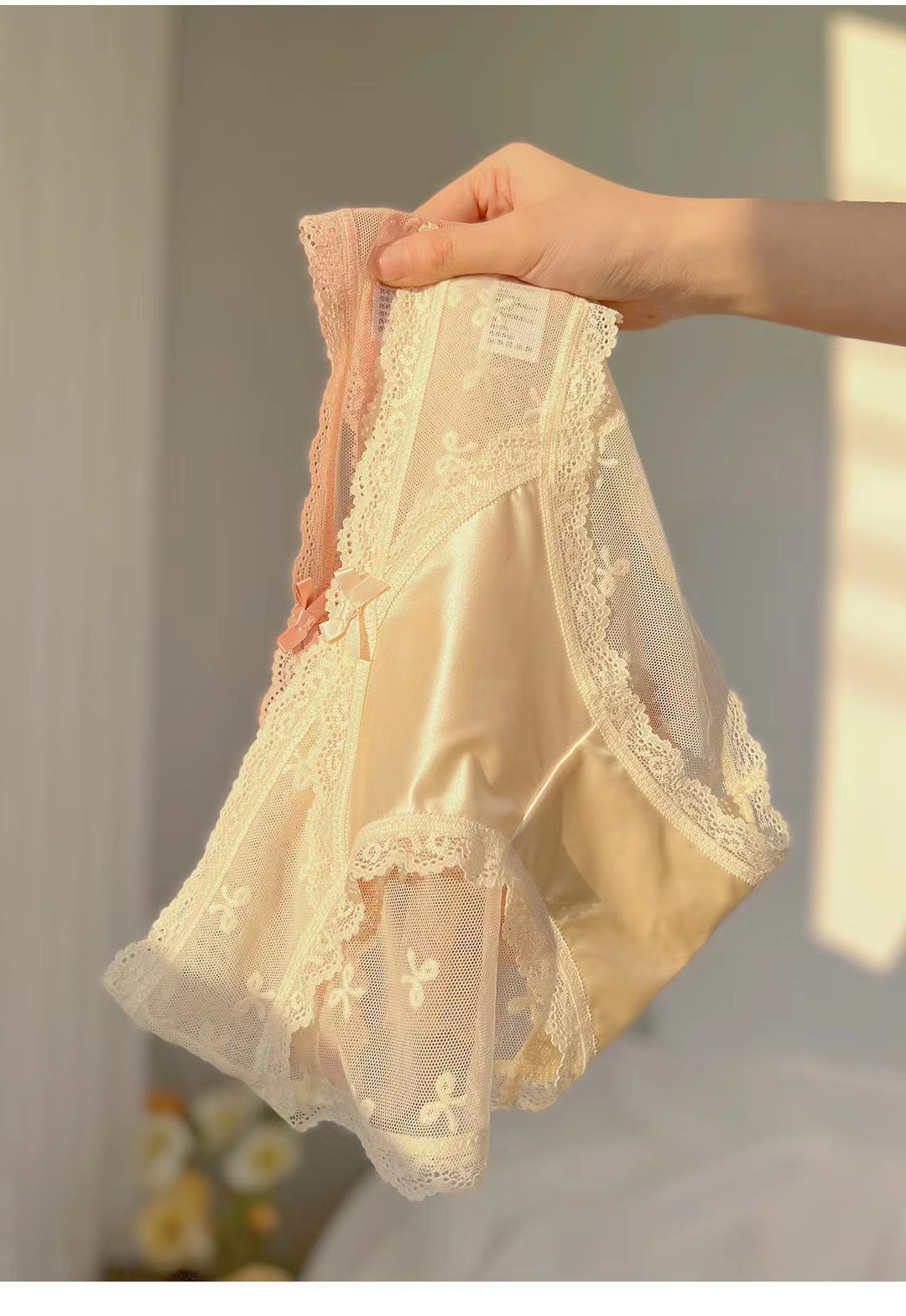 프랑스 크로스 섹시한 새틴 팬티 여성의 부드러운 레이스 순수한 욕망 낮은 허리 브리프 여성 순수한 욕망 활