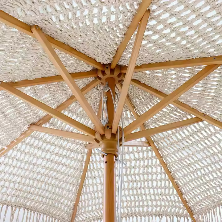대형 야외 햇살 정원 우산 면화 밧줄 짠 정원 우산 중공 로프 태양 우산 메시 밧줄 해변 우산스토어 가기