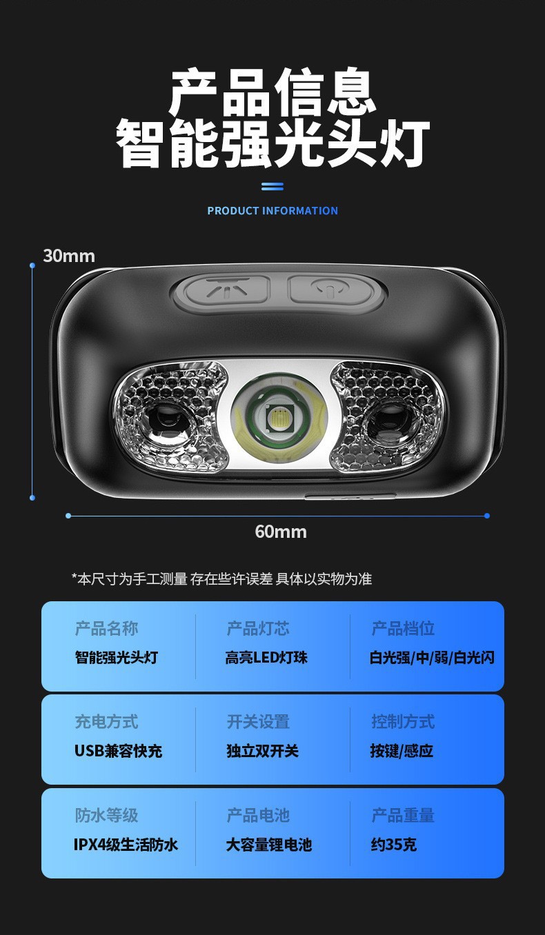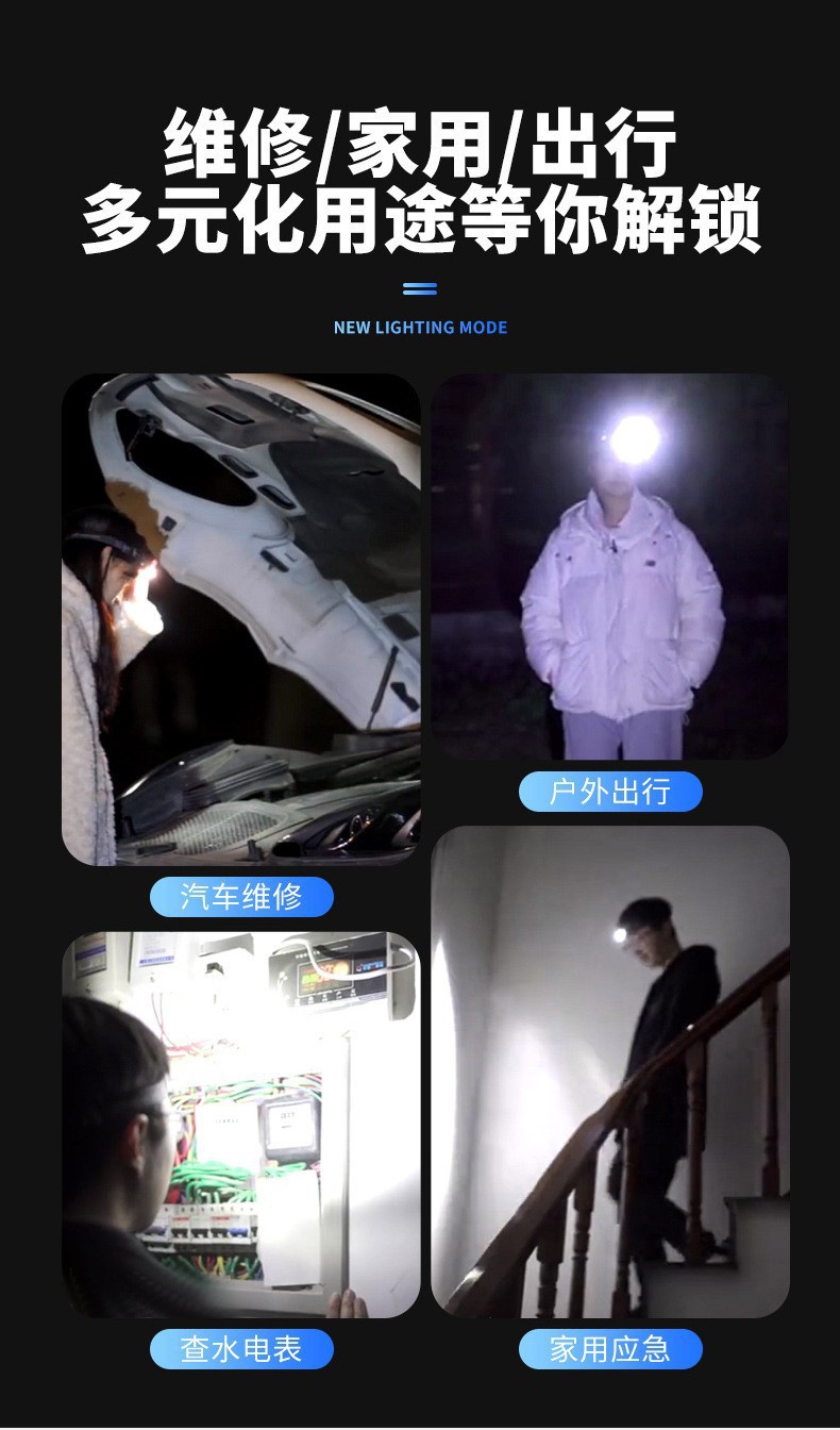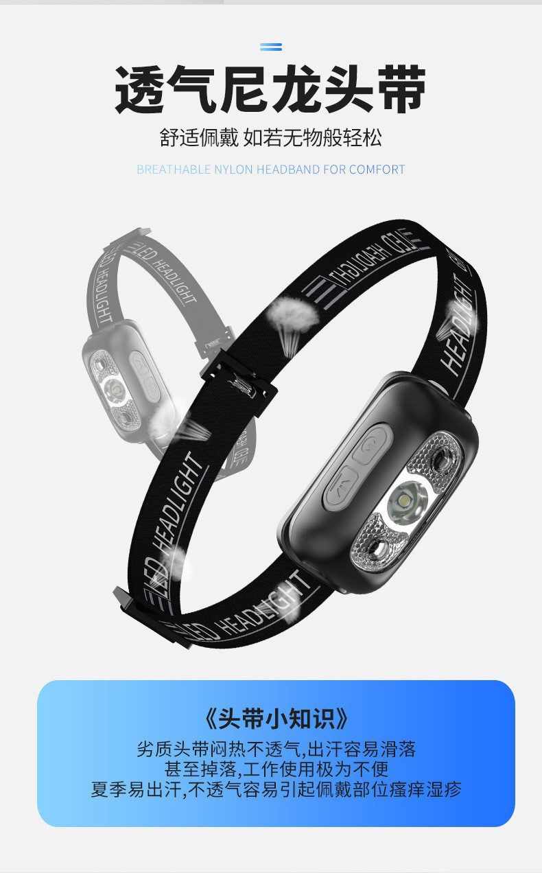 스마트 유도 usb 충전 유도 헤드 라이트 led 밤 낚시 휴대용 강한 빛 밤 실행 작은 헤드 라이트 야외 헤드 라이트스토어 가기