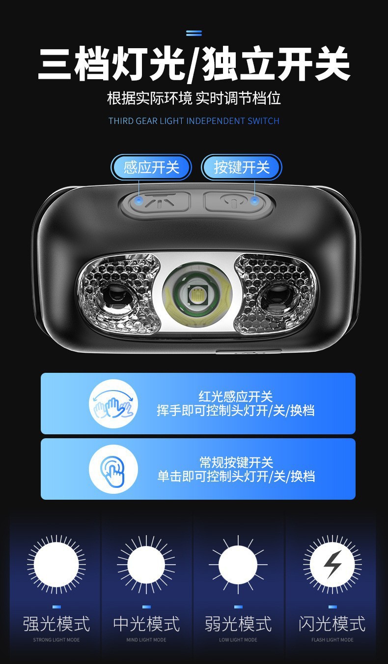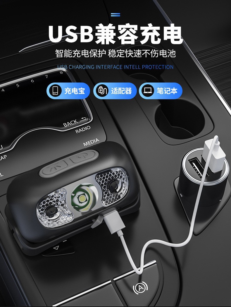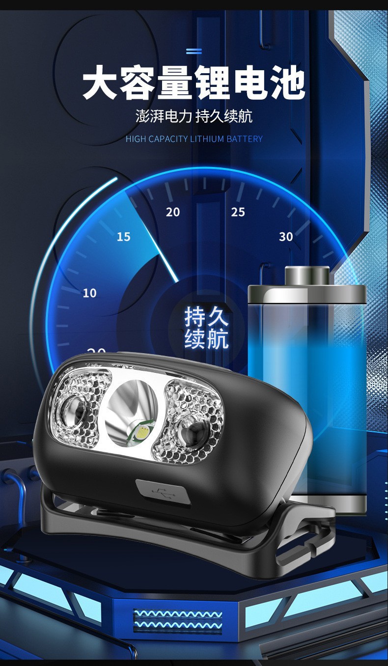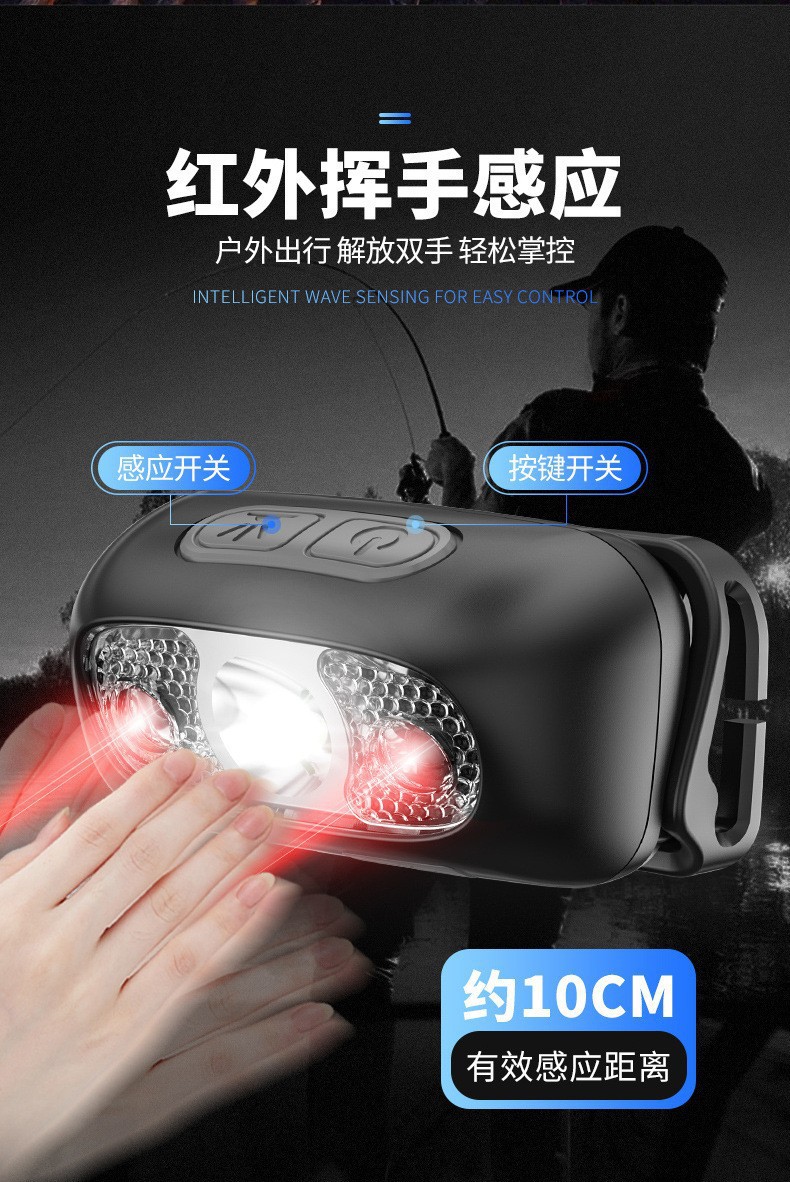 스마트 유도 usb 충전 유도 헤드 라이트 led 밤 낚시 휴대용 강한 빛 밤 실행 작은 헤드 라이트 야외 헤드 라이트
