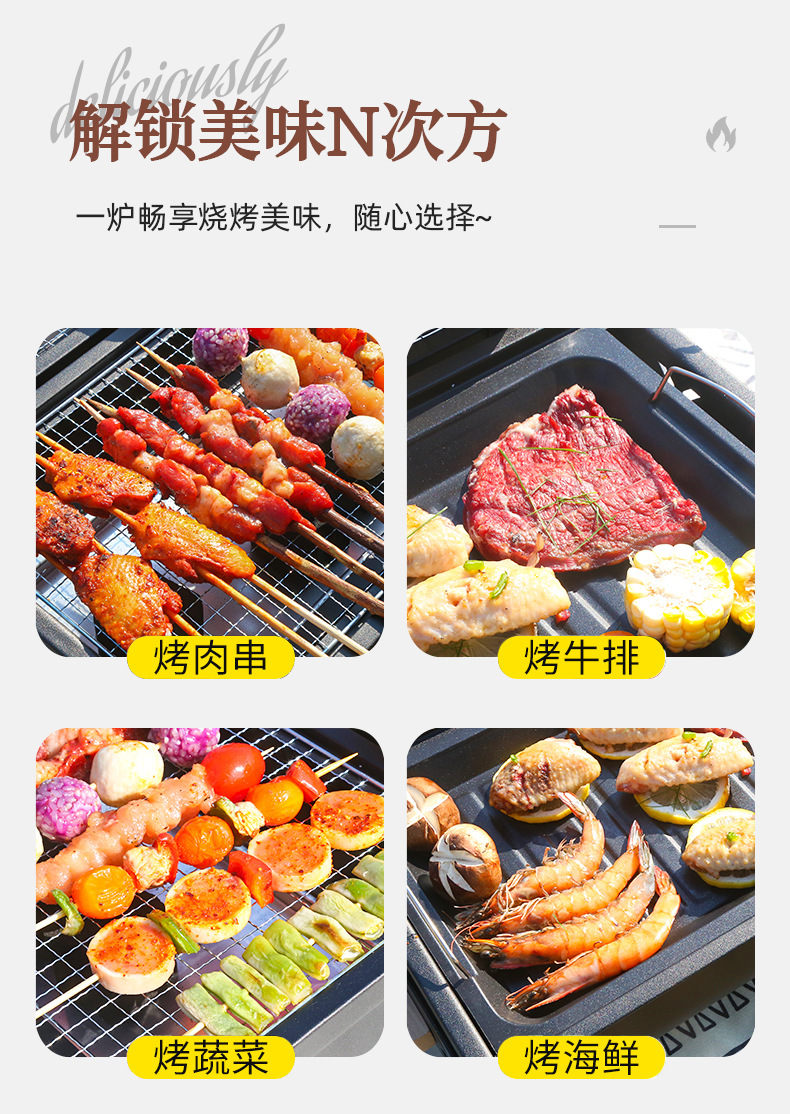 바베큐 그릴 가정용 튀김 및 그릴 이중 목적 휴대용 야외 캠핑 무연 그릴 바베큐 그릴 선물 그릴