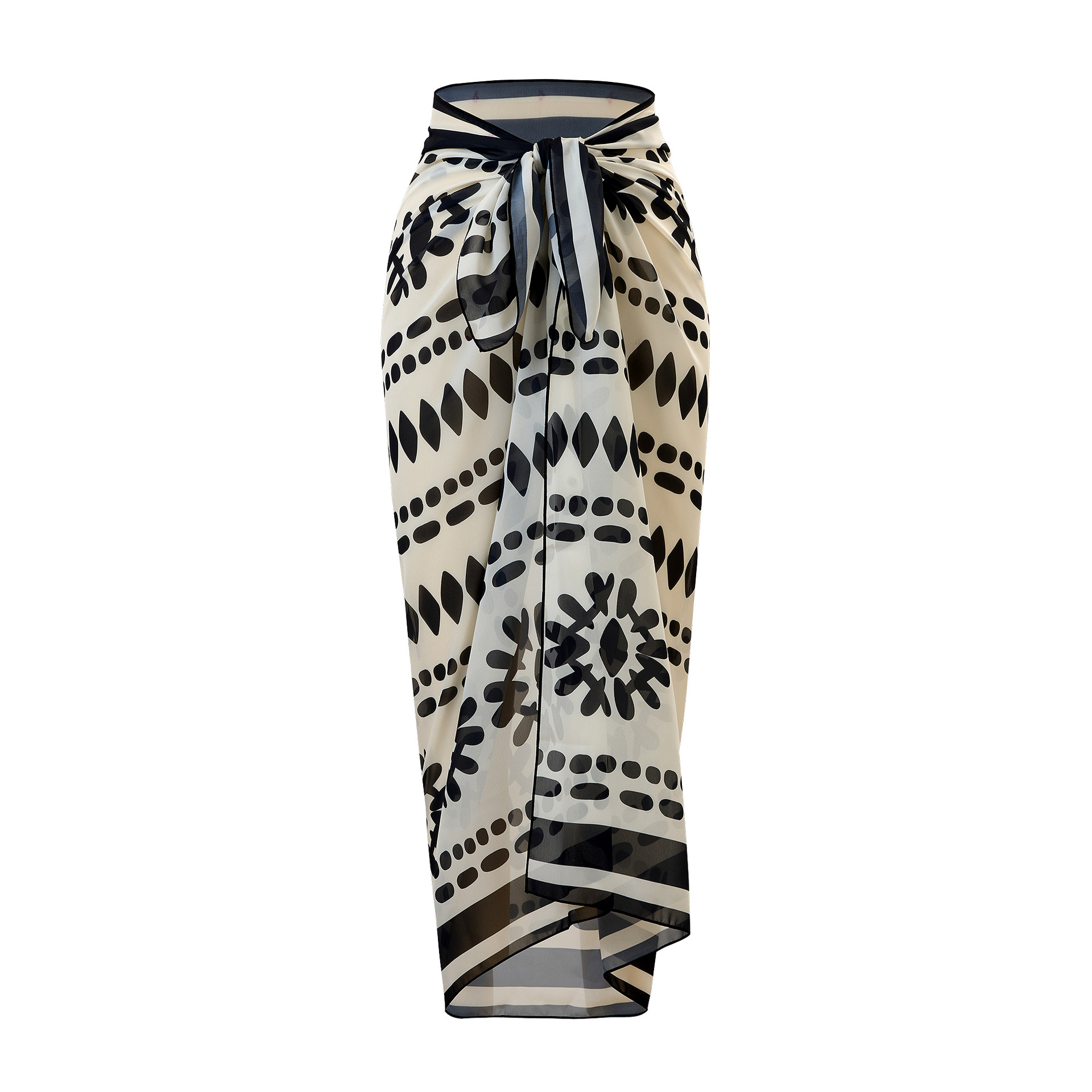 俏佳媛2025欧美新款分体泳衣女士尚性感挂脖系带雪纺裹裙三件套装