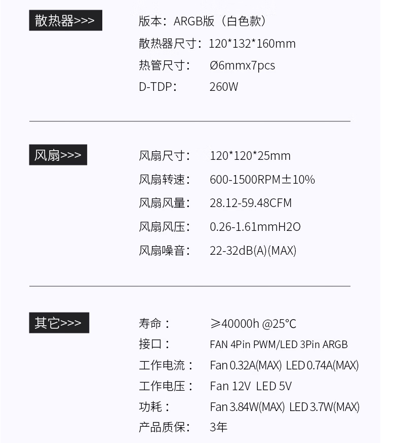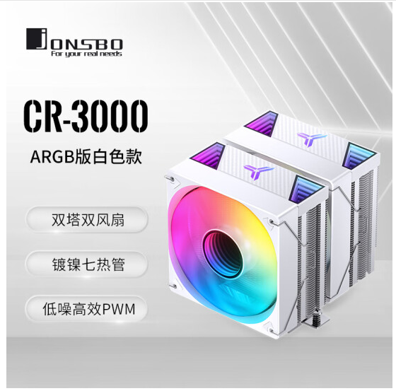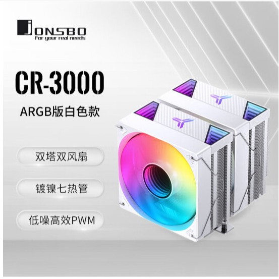 乔思伯(JONSBO)CR-3000ARGB版白色款 CPU风冷散热器(双塔双风扇/镀镍7热管/ARGB同步/PWM/多平台/附硅脂)