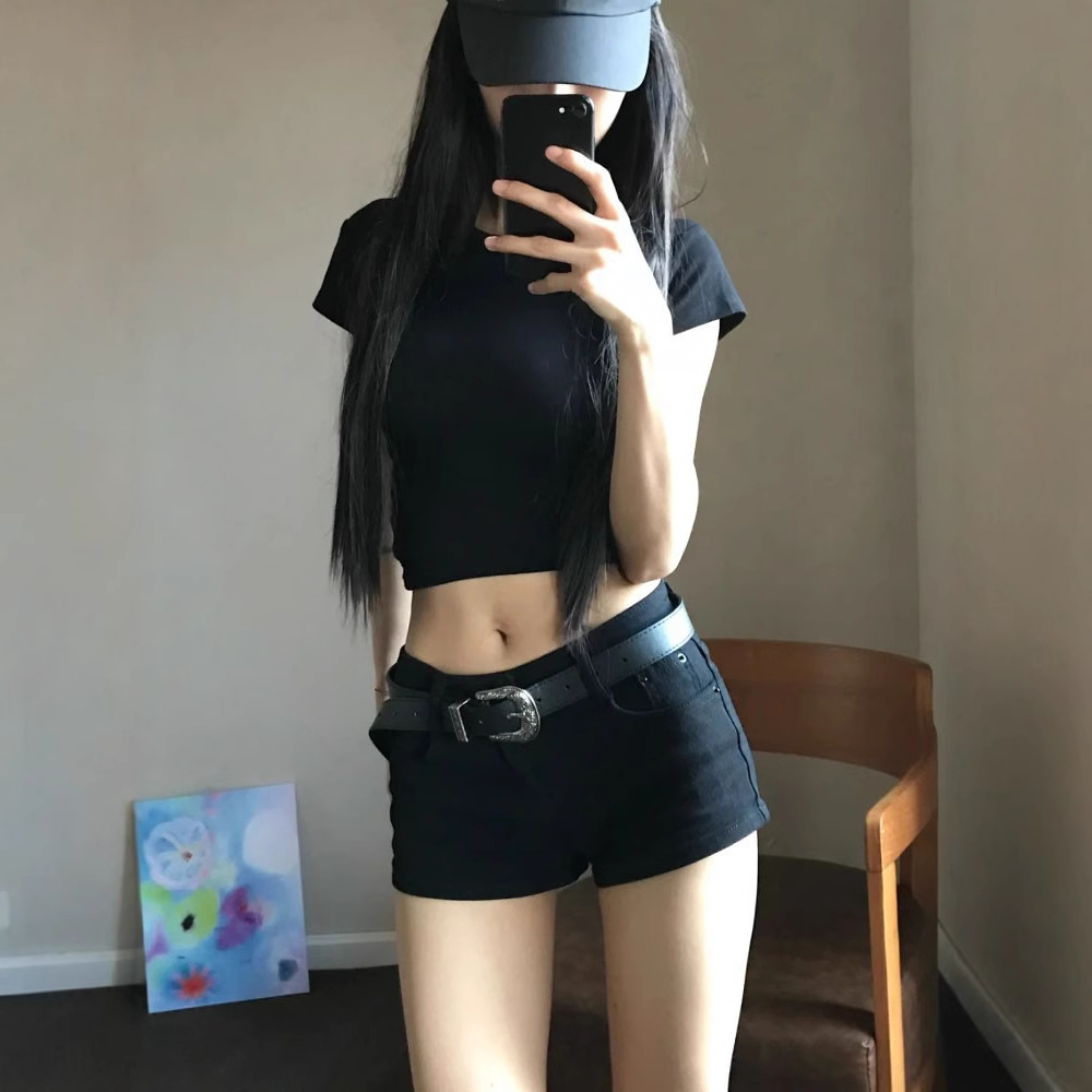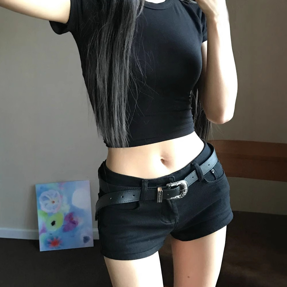 블랙 로우 허리 데님 반바지 여성 여름 가방 힙합 Y2K 빛 하위 문화 핫 바지 미국 스타일 핫 소녀 스트레치 바지스토어 가기